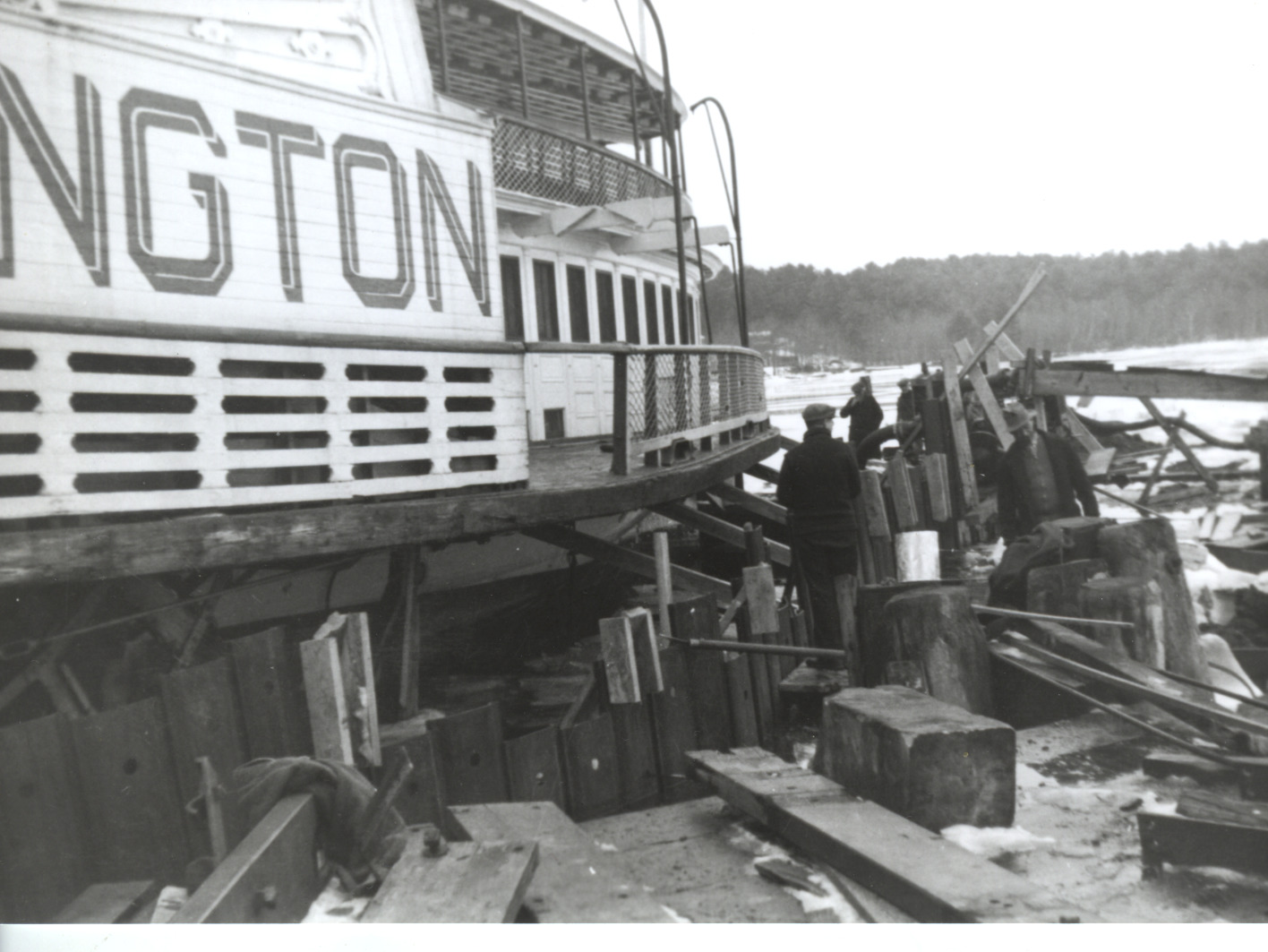 The 1872 Mt. Washington undergoing repair work in Center Harbor, 1937.