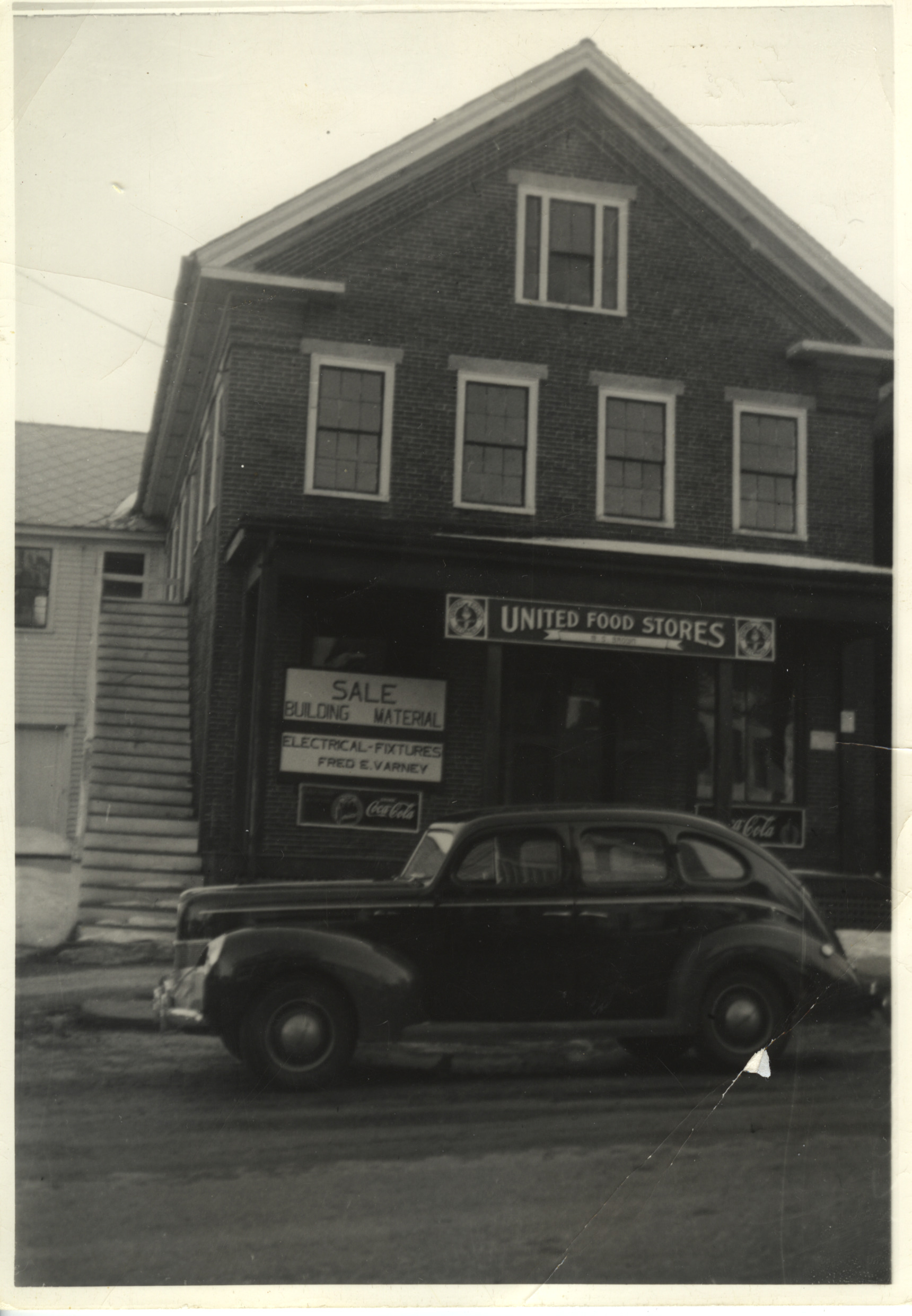 At the corner of North Main St. and Lake St., the center building was the United Food Store, and also had rooms for rent. The photo was taken shortly before the building was torn down in March, 1941.