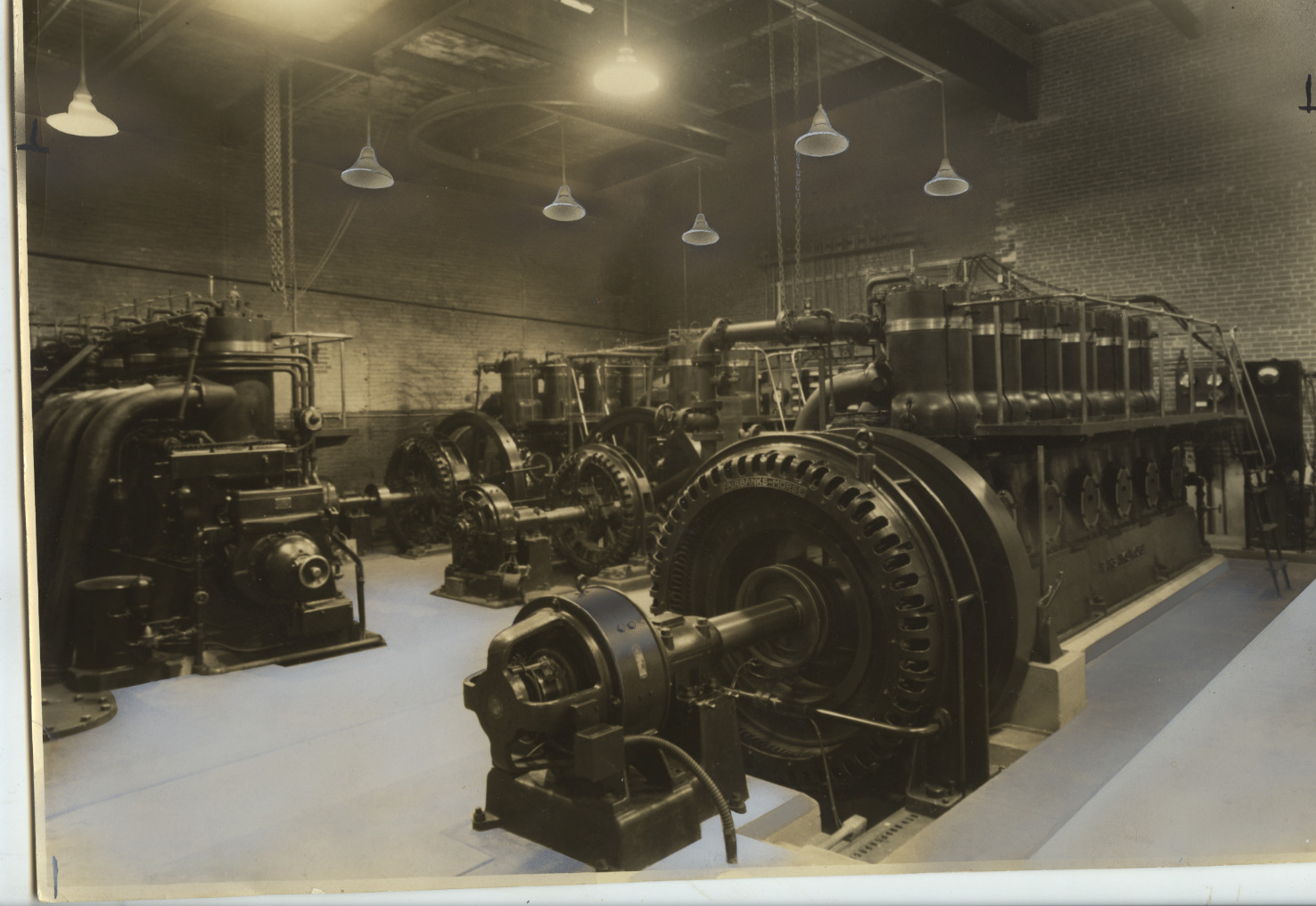 The interior of the Electric Power Plant on Factory St. (now Lehner St.), c. 1945, after the new diesel generator has been installed.