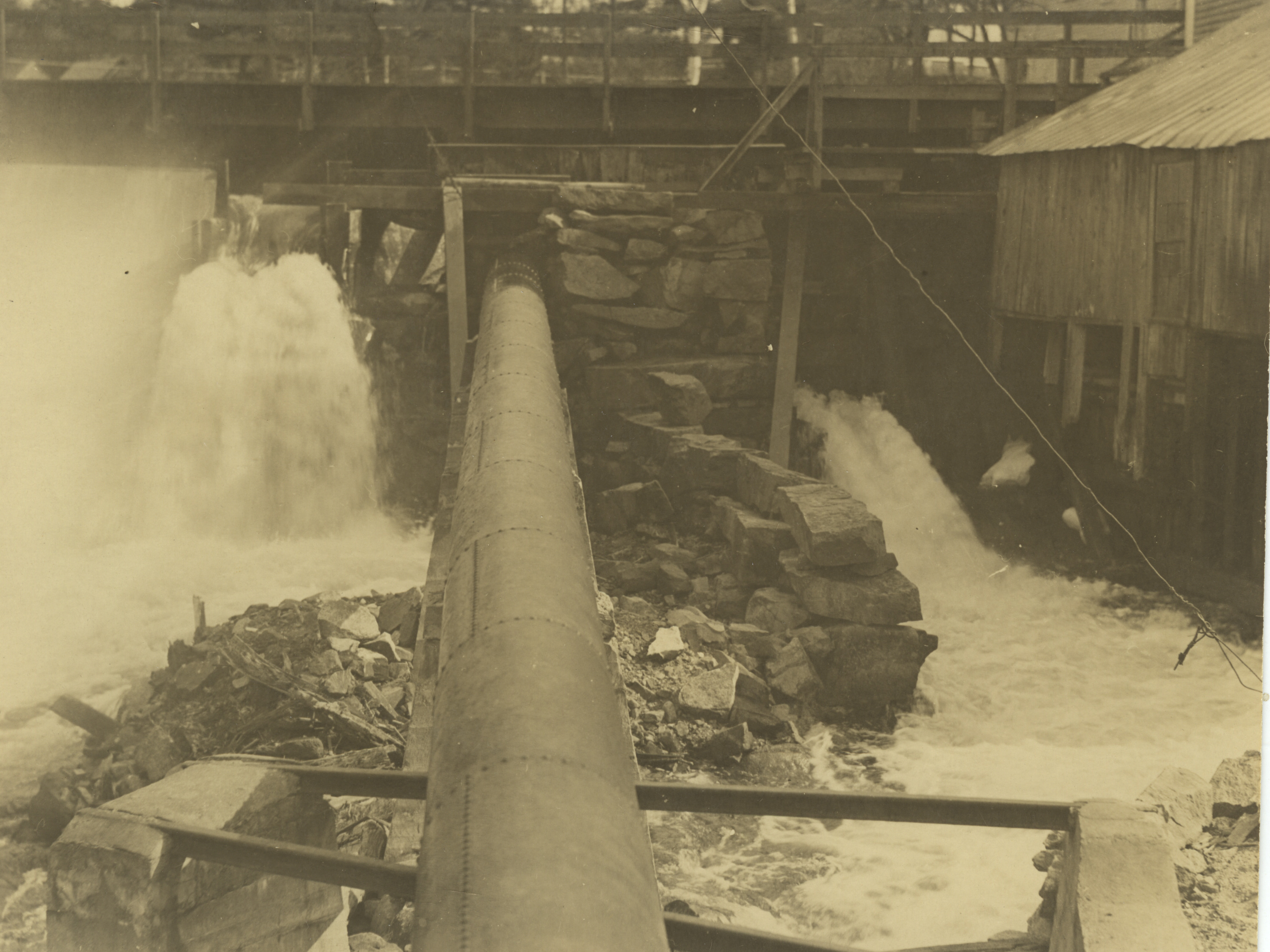 Lower dam on Mink Brook, on Rt. 28 next to the corner building. Mink Brook is the outlet of Rust Pond and supplied power to Mills and Factories in the 1800's and early 1900's.