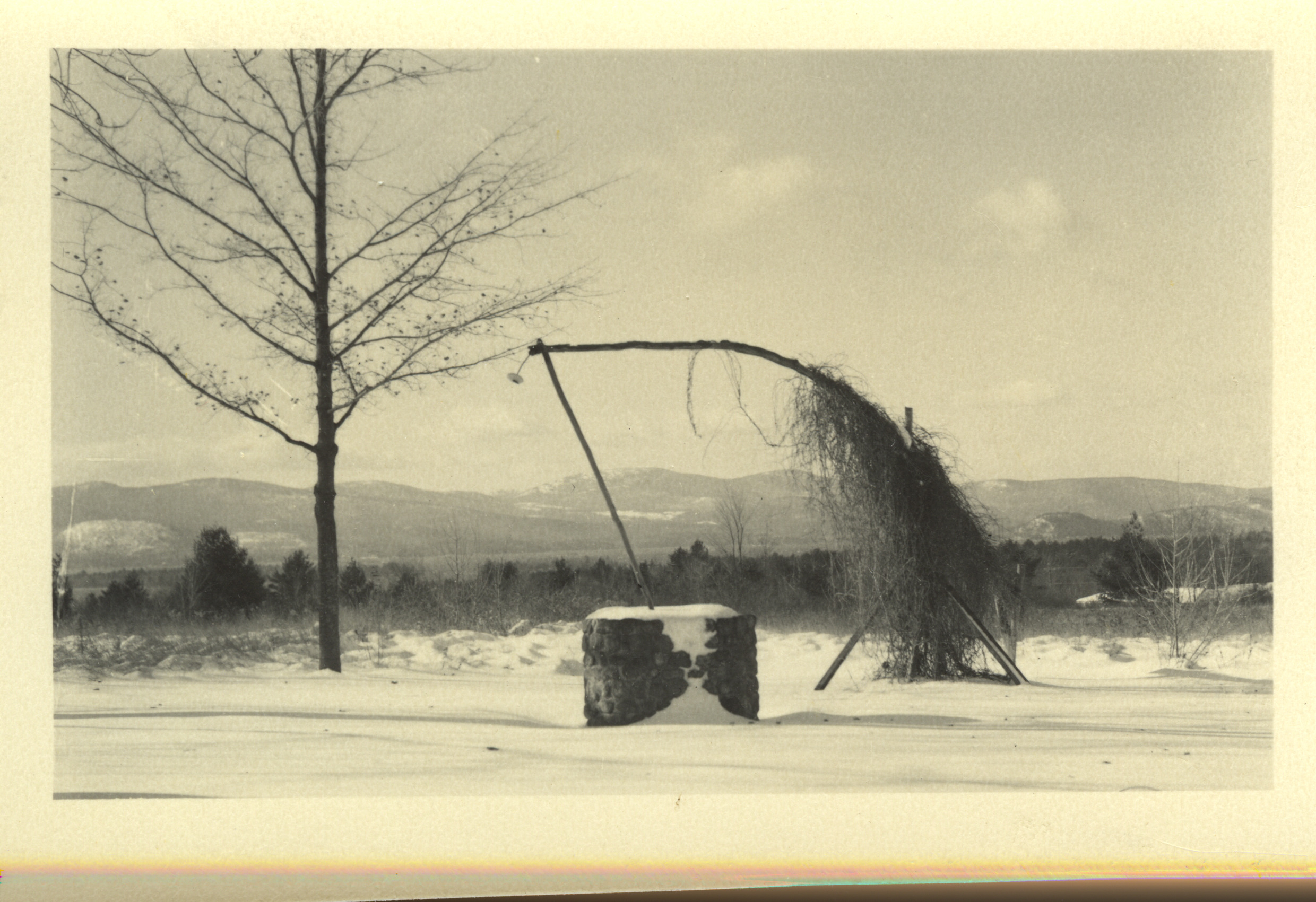 "Well Sweep" on South Main St. Long abandoned, the beam is sagging and overgrown with vines. This was designed to be counterbalanced to lift a bucket out of the well easily, then swung to the side to empty the water into an irrigation ditch or another container for portage to a trough or the house.
