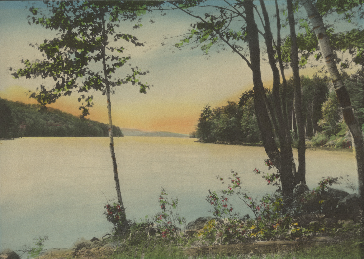 View of Robert's Cove in Alton, just south of the Town Line, colorized and likely used in a folder of photos sold to visitors.