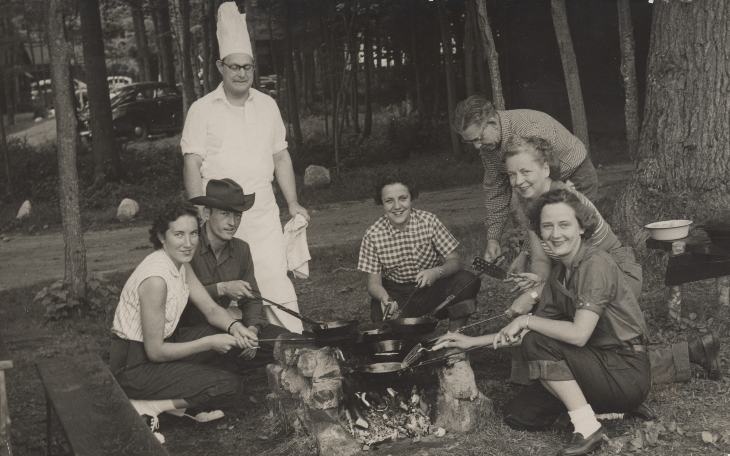 The Allen "A" Resort on Route 28. For history, see photos 35-37. Some of the amenities of the Resort are also on photos 55-71. Outdoor barbecues were a regular favorite. Meals, entertainment and activities were part of the weekly all-inclusive package. 1950's.