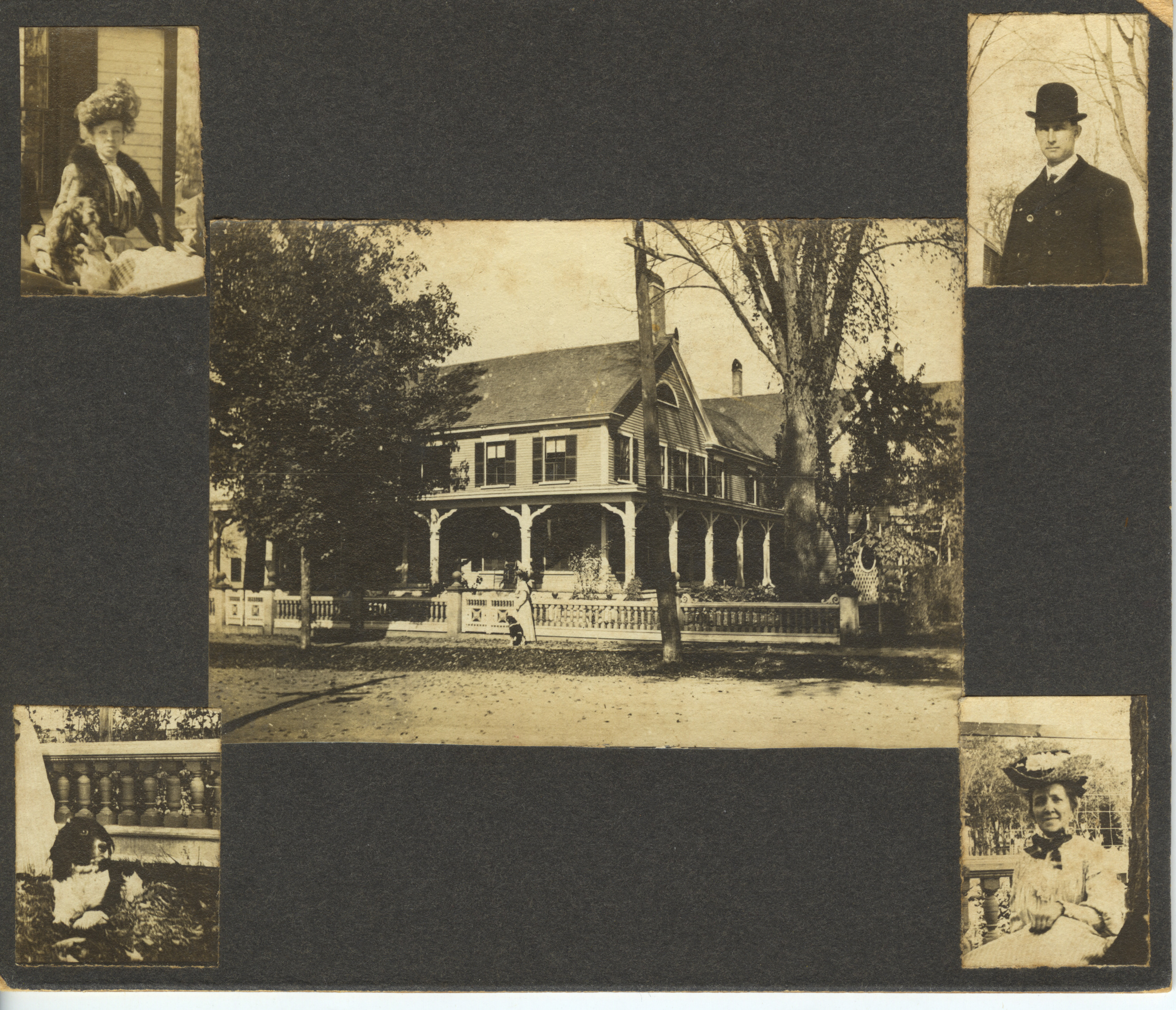 The John Pickering Tavern on South Main St. was built by John, c. 1813. Photo is c. 1890. It later became the home of his brother, Daniel Pickering, one of the town's most prominent businessmen. The junction of South Main St. & Center St. is still known as "Pickering Corner". The building has recently been restored. The names of the people and dog are unknown.