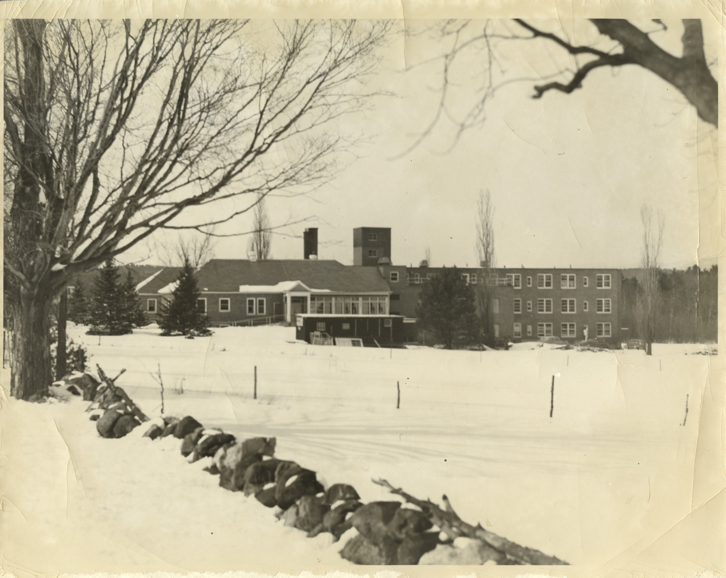 Winter view of Huggins Hospital, right side, after the 1950 addition.