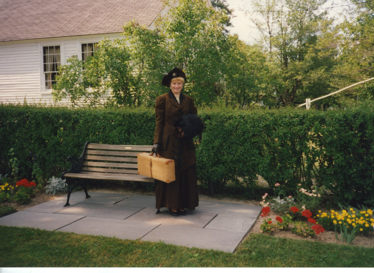 Natalie Ericson is in period clothing in the gardens, 1995, at the Clark Museum Complex on South Main St.