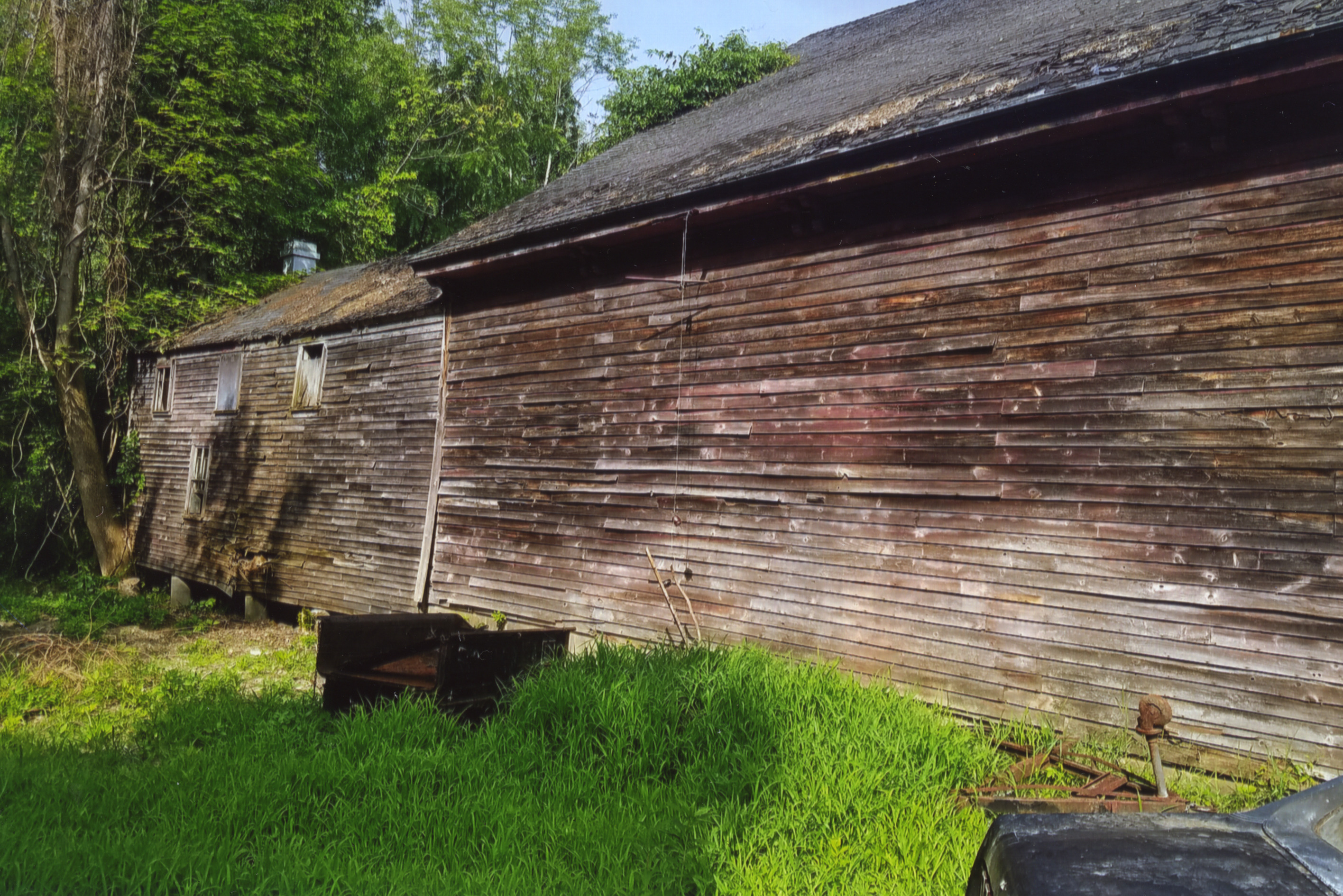This is the original Clark House barn, moved to Goodrich Rd. shortly after 1917. This is the left side in 2019. The barn was demolished in 2022.