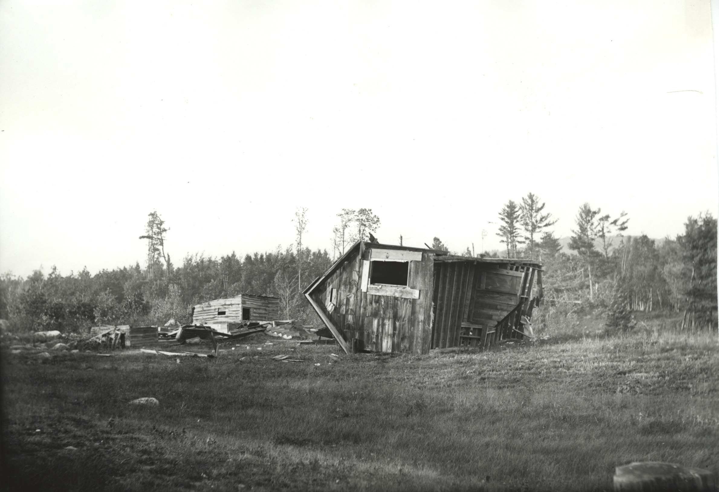 October 1, 1910 tornado. At the Hooper homestead, an outbuilding is turned on its side and wreckage is strewn about.