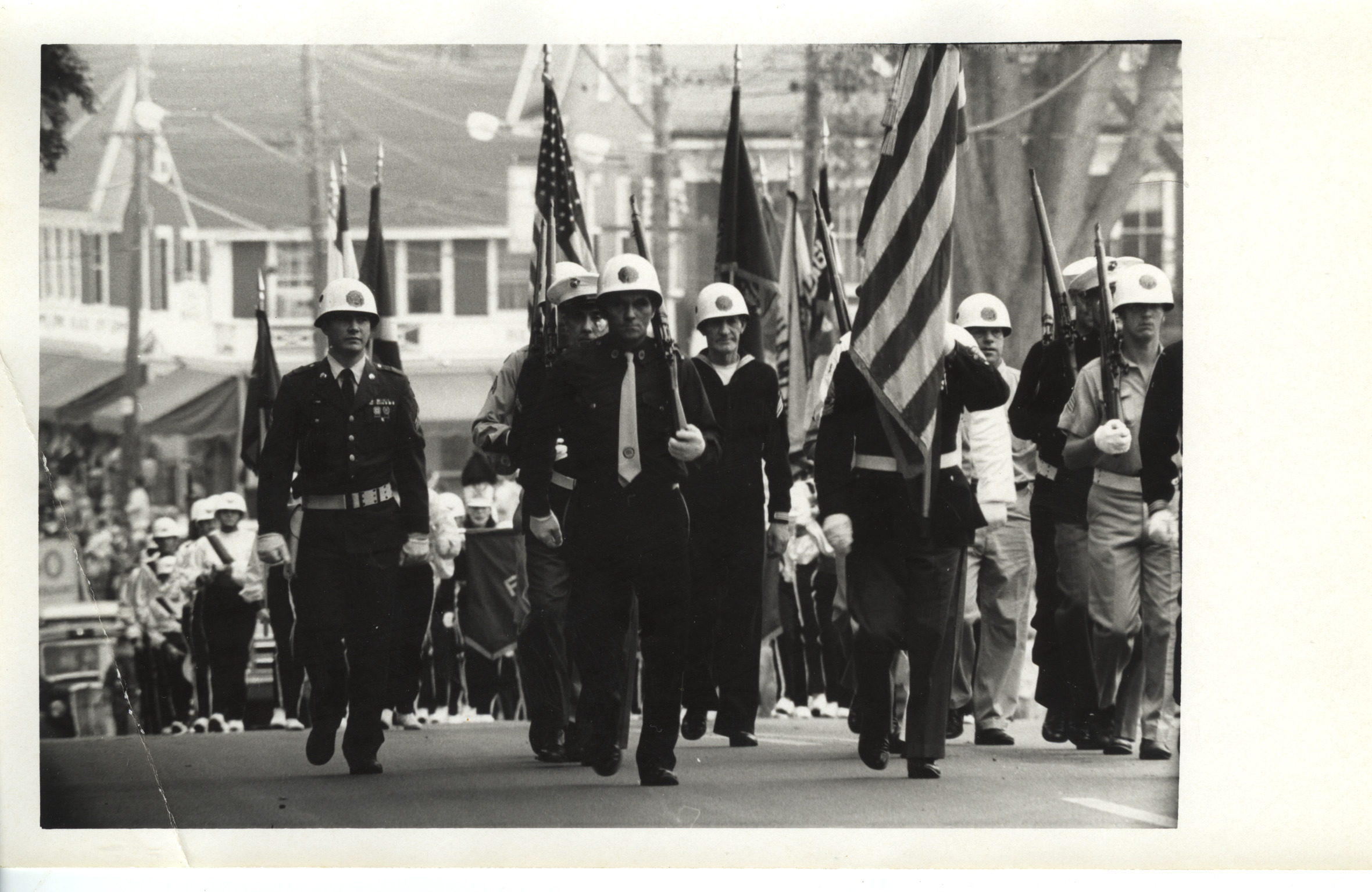 Fourth of July, c. 1980. Military marching group.