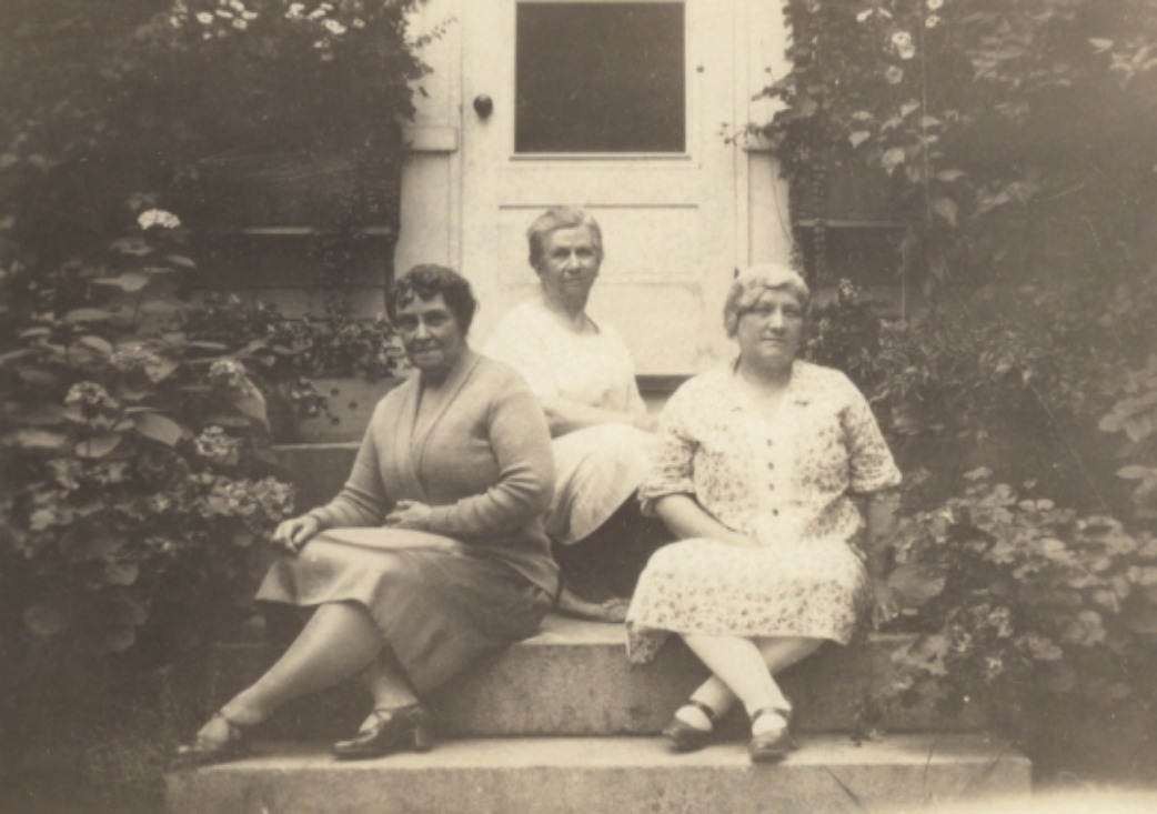 Center is Nellie Graves. Photo taken at her house at the rear of the former Camelot Bookstore on North Main St.