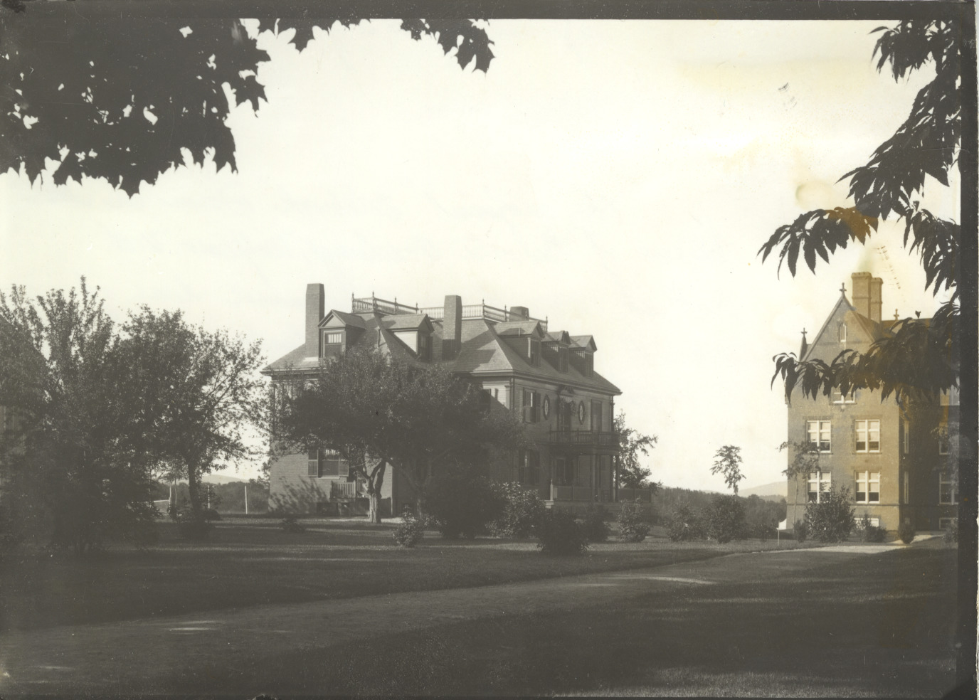 Brewster Free Academy, original Estabrook House, Academy Building on the right. Estabrook Hpuse was built in 1890, had a major fire in January, 1897, destroying much of the second & third floors, then was rebuilt. This photo is before the fire.