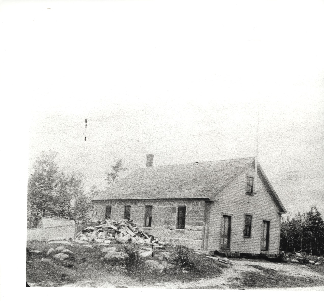South Wolfeboro Schoolhouse, stone construction. Believed to have been built around the 1840's, it was razed in 1902, being no longer able to support the increasing number of students in the area. A larger wooden structure was built on the same site.