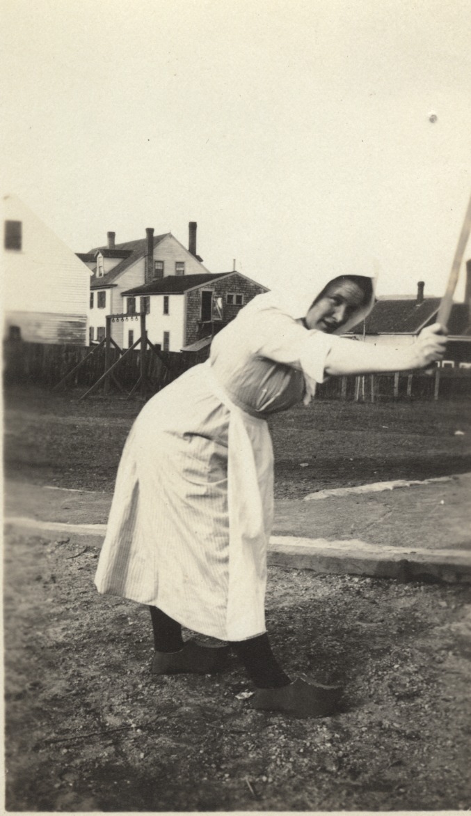 Pickering and Carpenter staff, fashion show. Miss Alice Givens as "Dutch Cleanser". C. 1920.