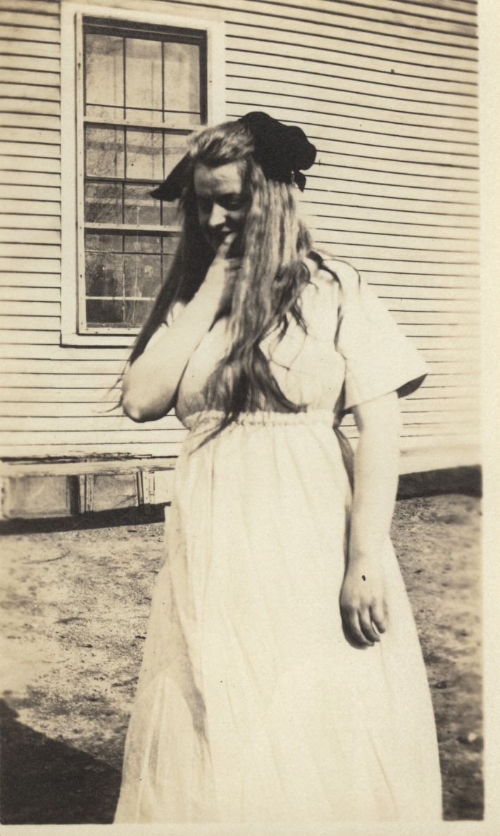 Pickering and Carpenter staff, fashion show. Miss Rollins as "Shy Little Girl". C. 1920.
