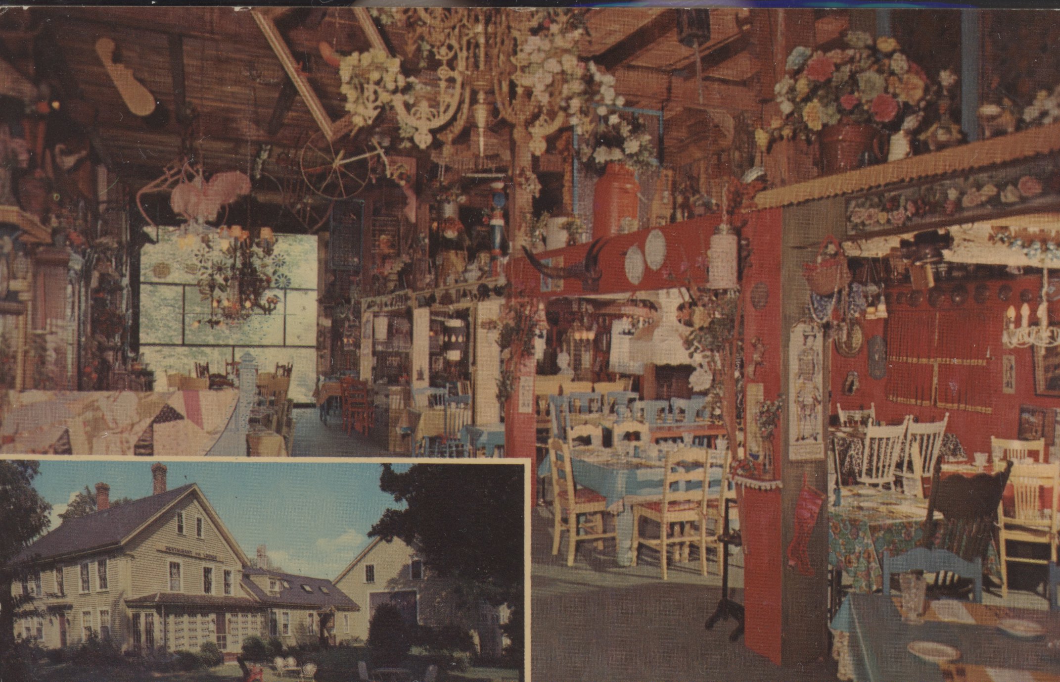 Advertising postcard. The Bittersweet Restaurant was in the barn of an historic building on Center Street near the junction with North Line Road. The Restaurant opened in 1962 and closed about 2009.