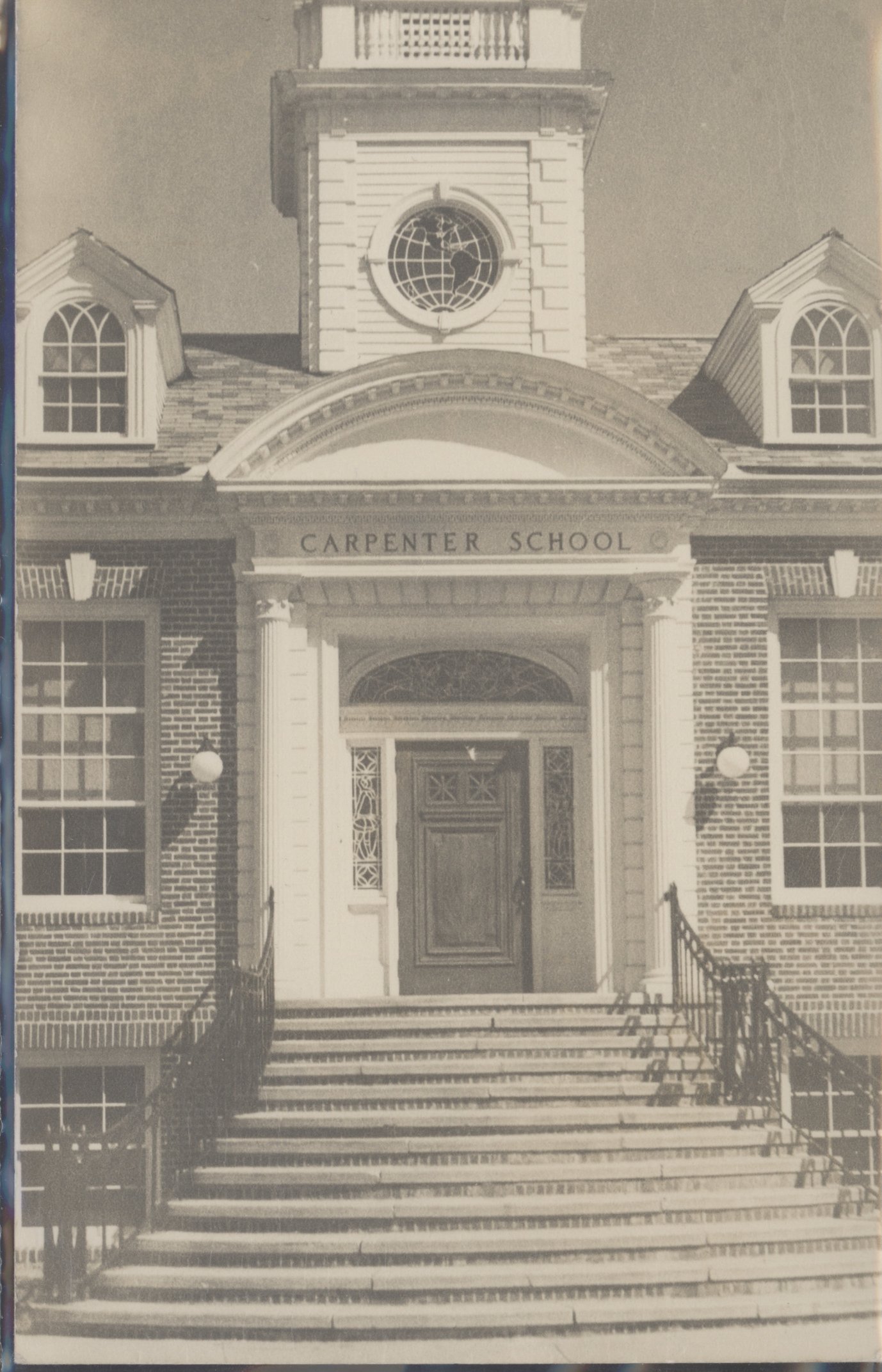 Carpenter School, front entrance. School was completed in 1925, named in memory of Mrs. Livonia Carpenter, mother of Wolfeboro's benefactor, George A. Carpenter.