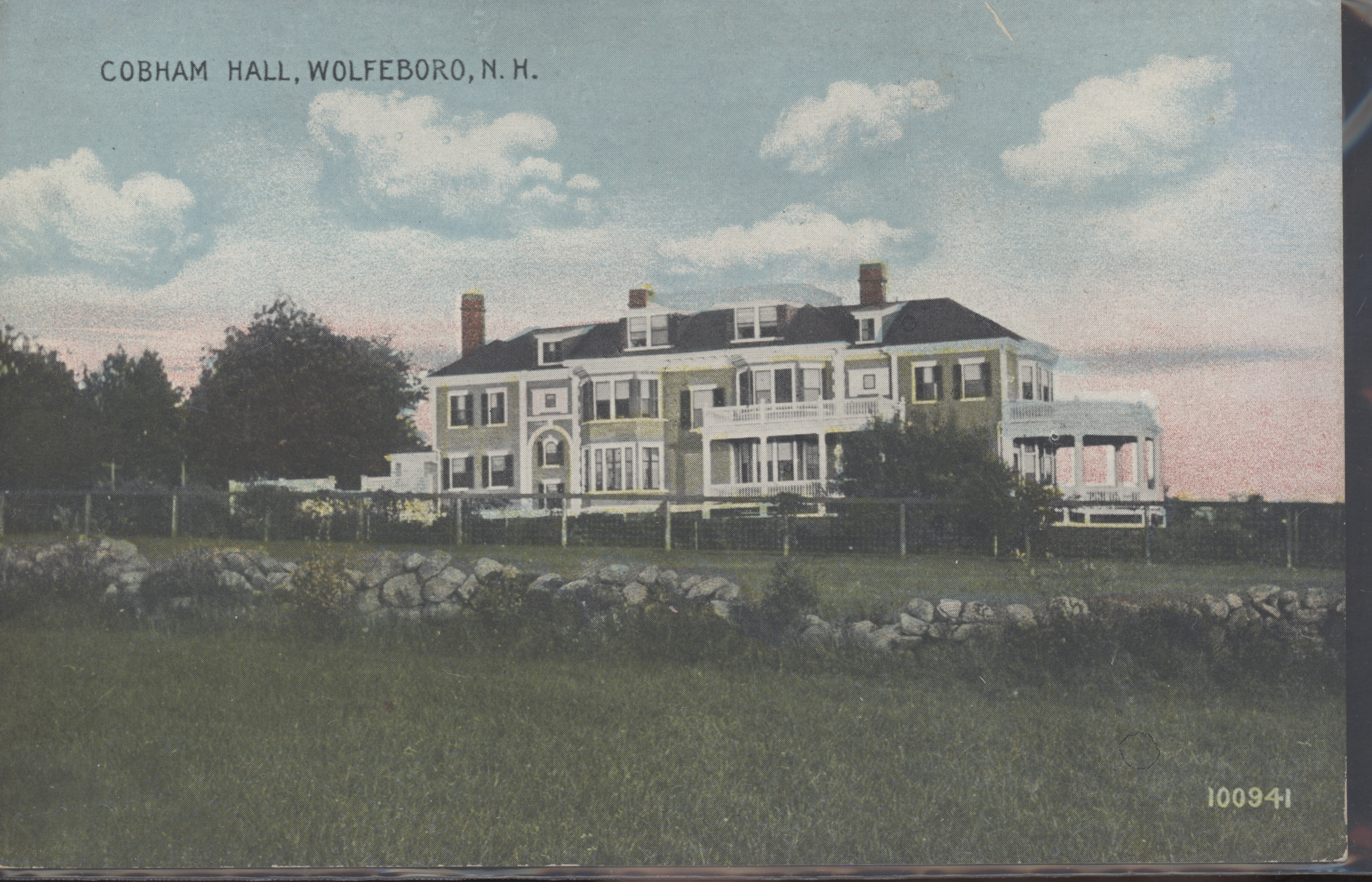 The residence of George A. Carpenter, at the end of Green Street, was built in 1892 and named Cobham Hall. Purchased by Brewster Academy in 1965, it was renamed Bearce Hall. Card is c. 1910.