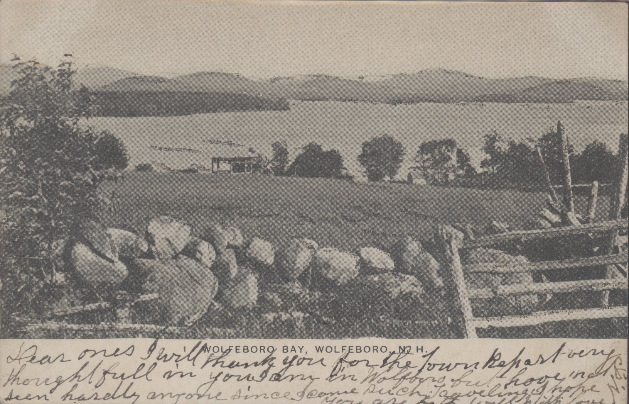 Wolfeboro Bay from Pleasant Street area, dated 1906. Clark Point is in the center. Same as previous card, but this one was used.