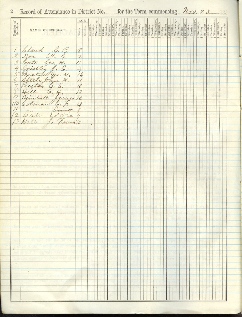 Clark Doe Cate Gridley Preston Steele Hill Kimball Colman