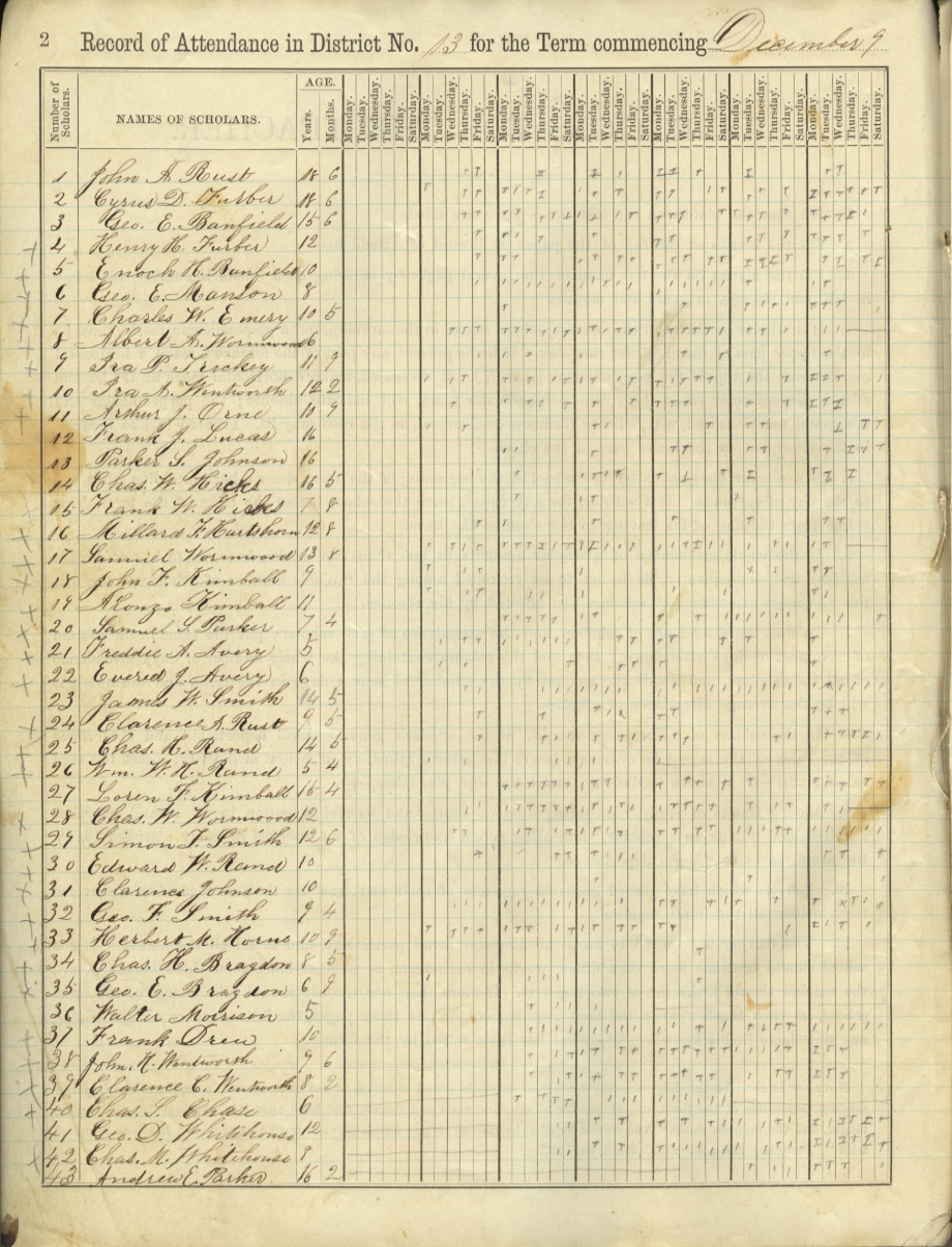 Wolfeboro Historical Society Digital Archive 19th Century School Registers 1860's 1863 |