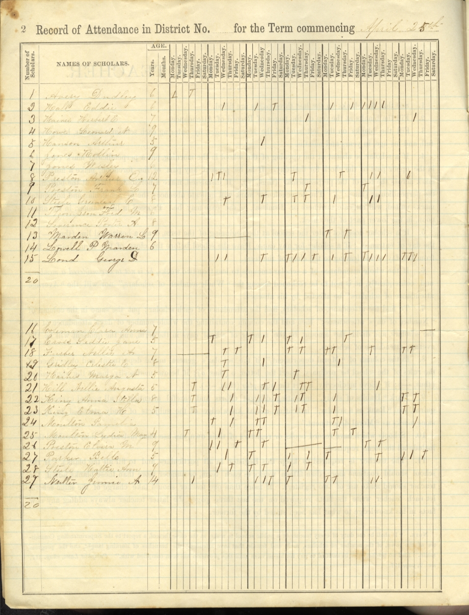 Avery Hall Haines Howe Hanson Jones Preston Steele Thompson Severance Marden Lowell Loud Coleman Cross Furber Gridley Hill King Moulton Parker Martin