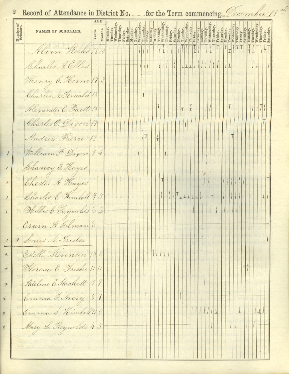 Weeks Ellis Horne Fernald Raitt Dixon Pierce Hayes Kimball Reynolds Gilman Frisbee Stevenson Hackett Avery