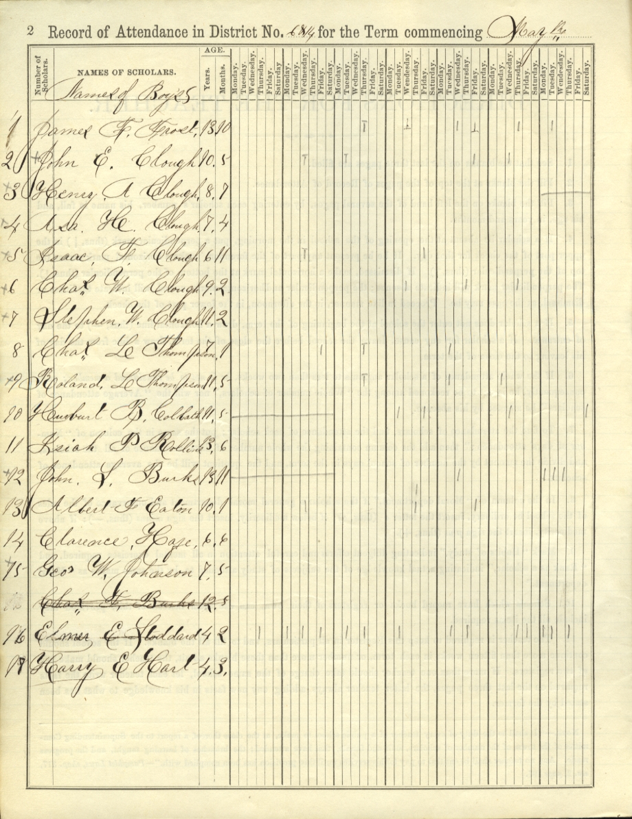 Frost Clough Thompson Colbath Rollins Burks Eaton Hays Johnson Stoddard Hart