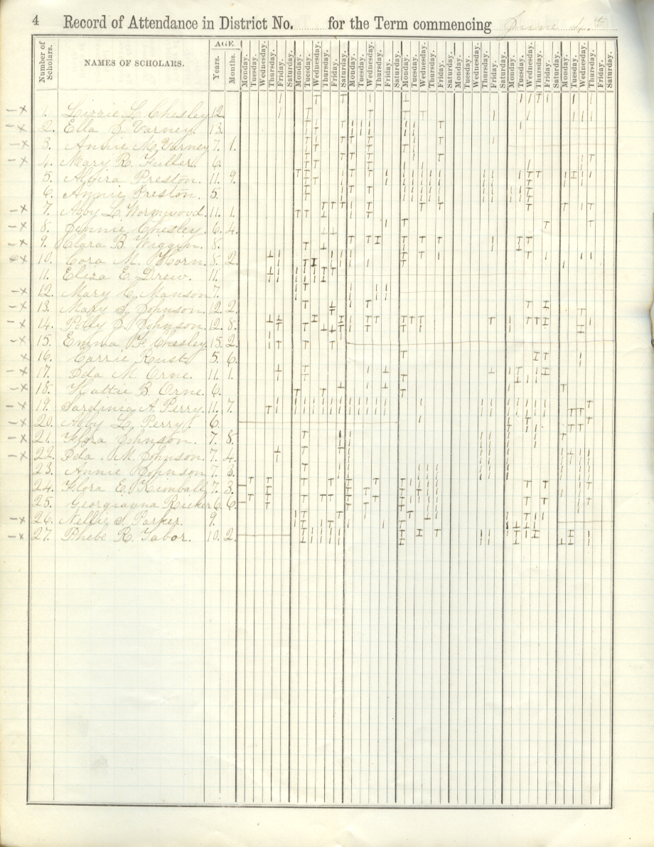 Chesley Varney Fuller Preston Wormwood Wiggin Horn Drew Manson Johnson Rust Orne Perry Kimball Ricker Tabor