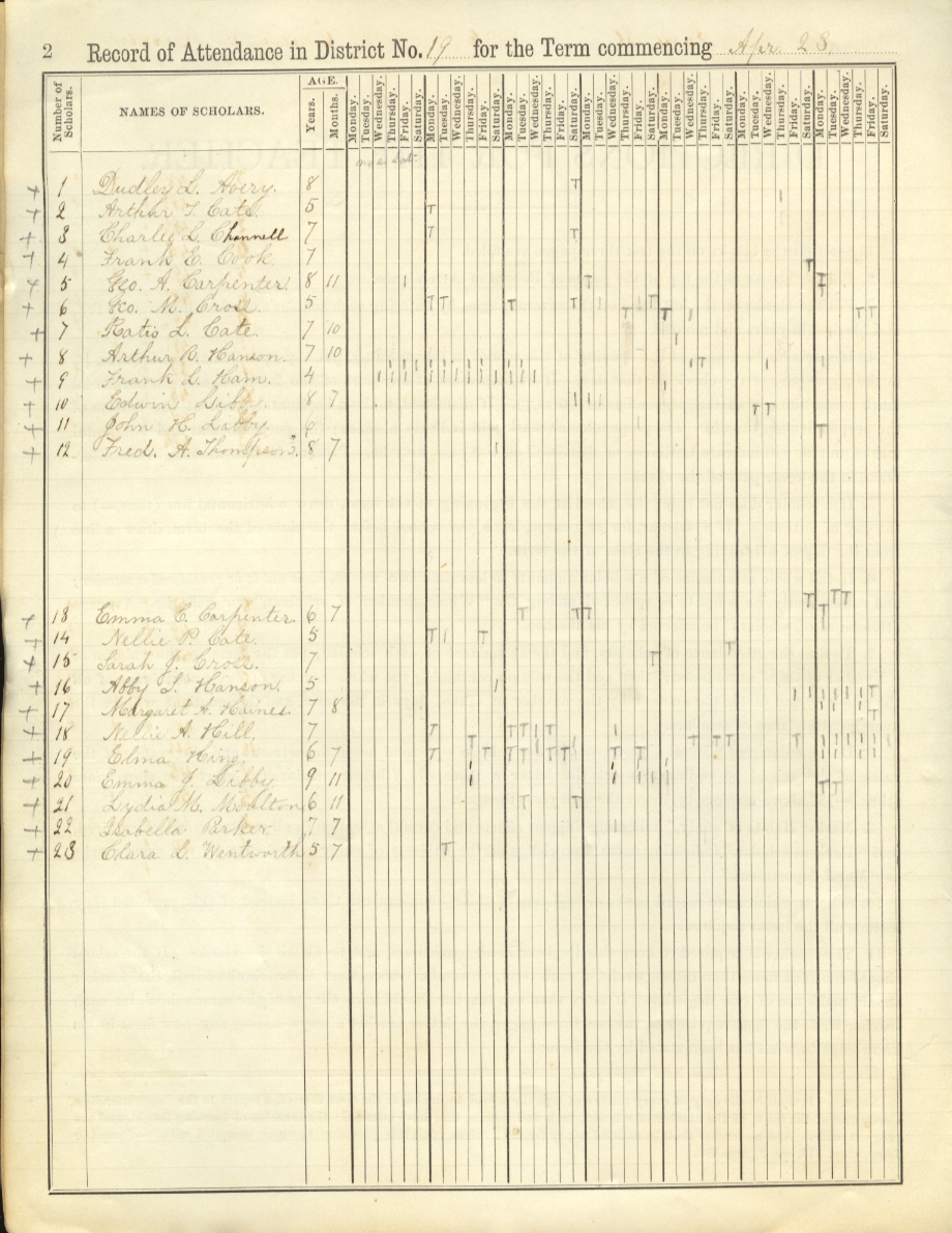 Avery Cate Channell Cook Carpenter Cross Hanson Ham Libby Thompson Haines Hill King Moulton Parker Wentworth