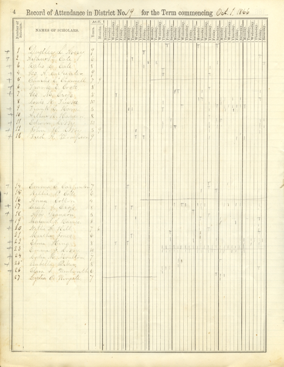 Wolfeboro Historical Society Digital Archive 19th Century School Registers 1860's 1866 |