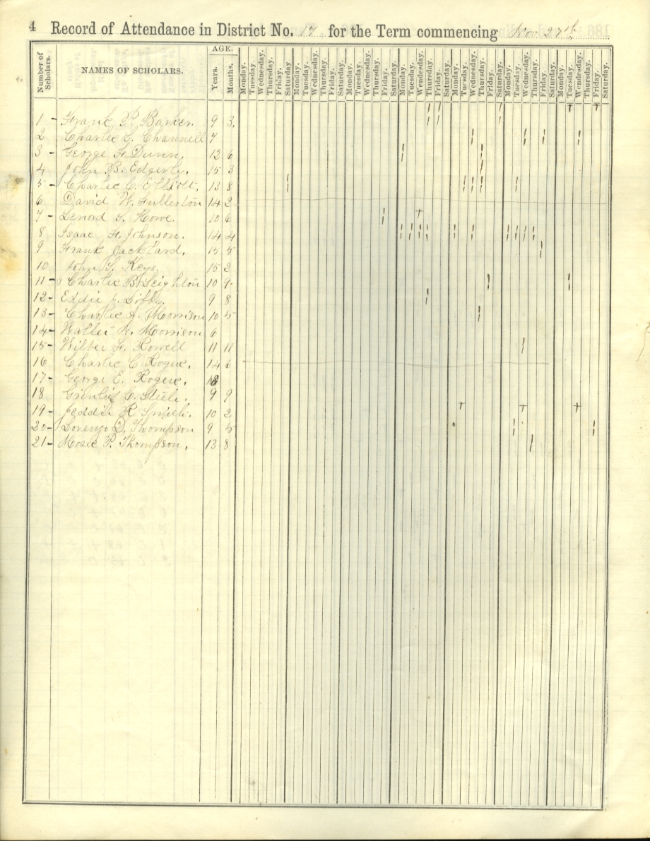 Barker Channell Dunn Edgerly Elliott Fullerton Howe Johnson Lacklard Keys Leighton Libby Morrison Rowell Rogers Steele Smith Thompson