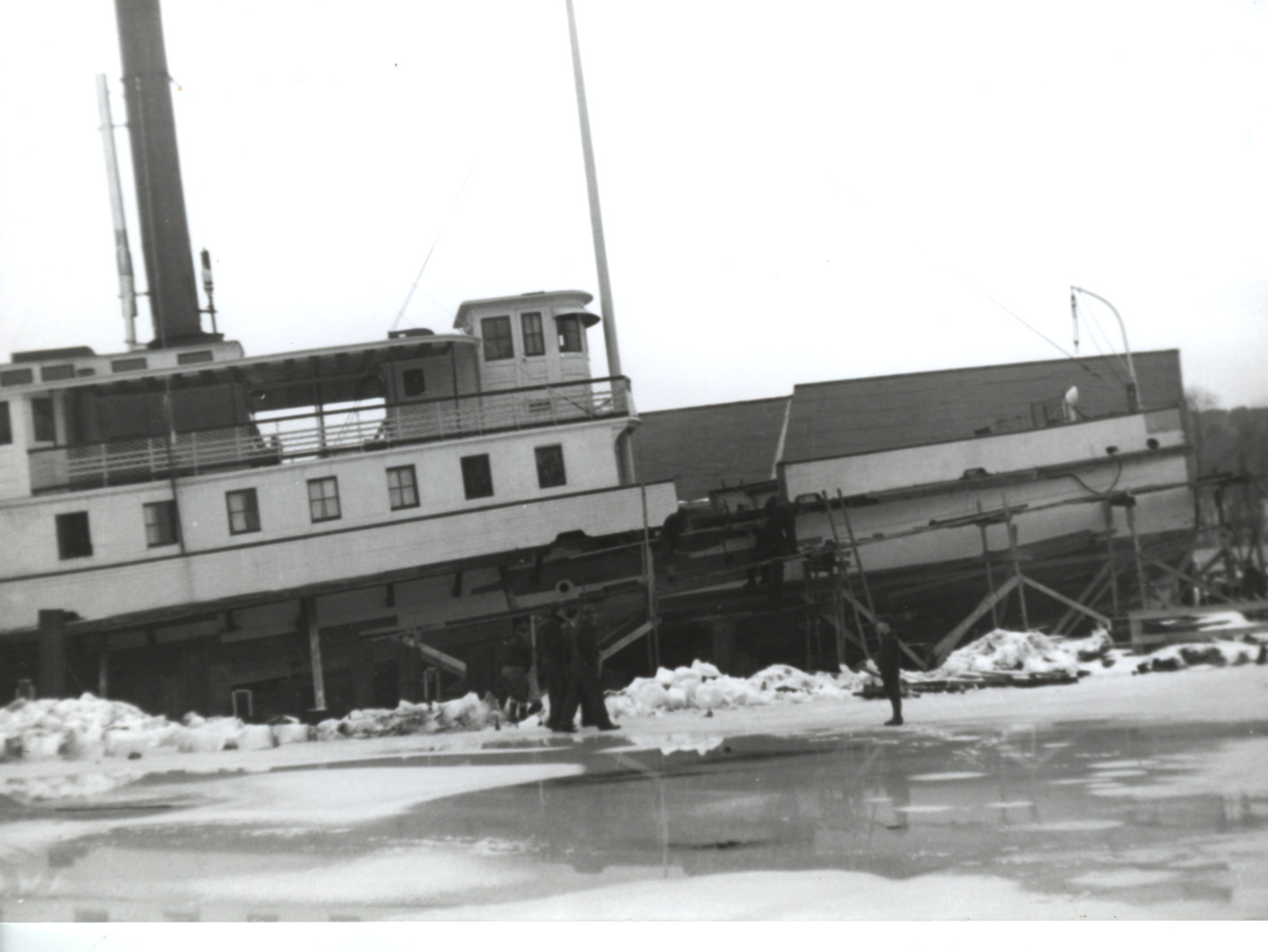 The 1872 Mt. Washington undergoing repair work in Center Harbor, 1937.