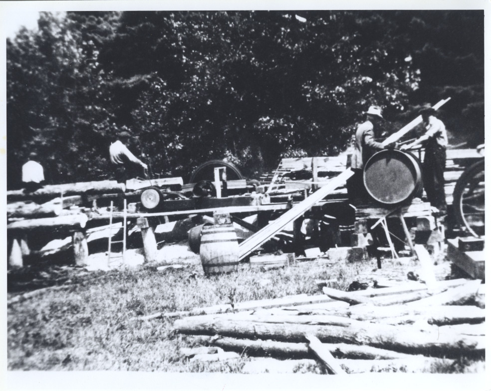 This is Greenleaf B. Clark's sawmill on Clark Rd., c. 1910. He is the man on the right in the white hat. Exact location isn't known. Clark was an entrepreneur, bought, sold, moved and rented houses, and involved in building projects all over town. He donated his homestead and nearby land to the Town in 1917; this became the basis of the Clark Museum Complex, managed by the Wolfeboro Historical Society. Clark was listed as the wealthiest man in the Town in the 1919 Inventory.