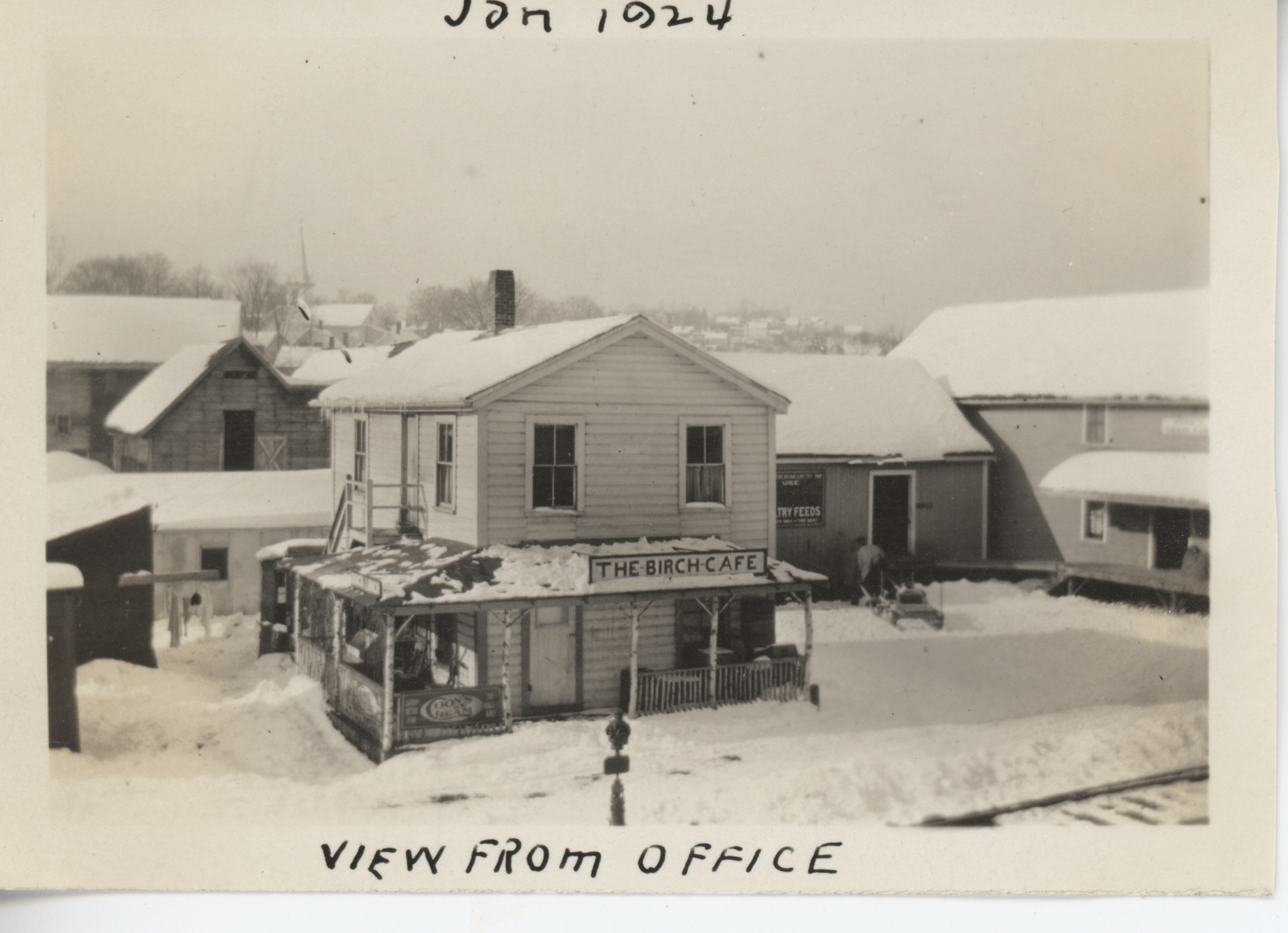The Birch Cafe in 1924 was on Railroad Ave. behind the Kimball Hardware Store shown in the previous photo. It burned down later in July, 1924; see photos in Fire and Town Services, Fire Department.