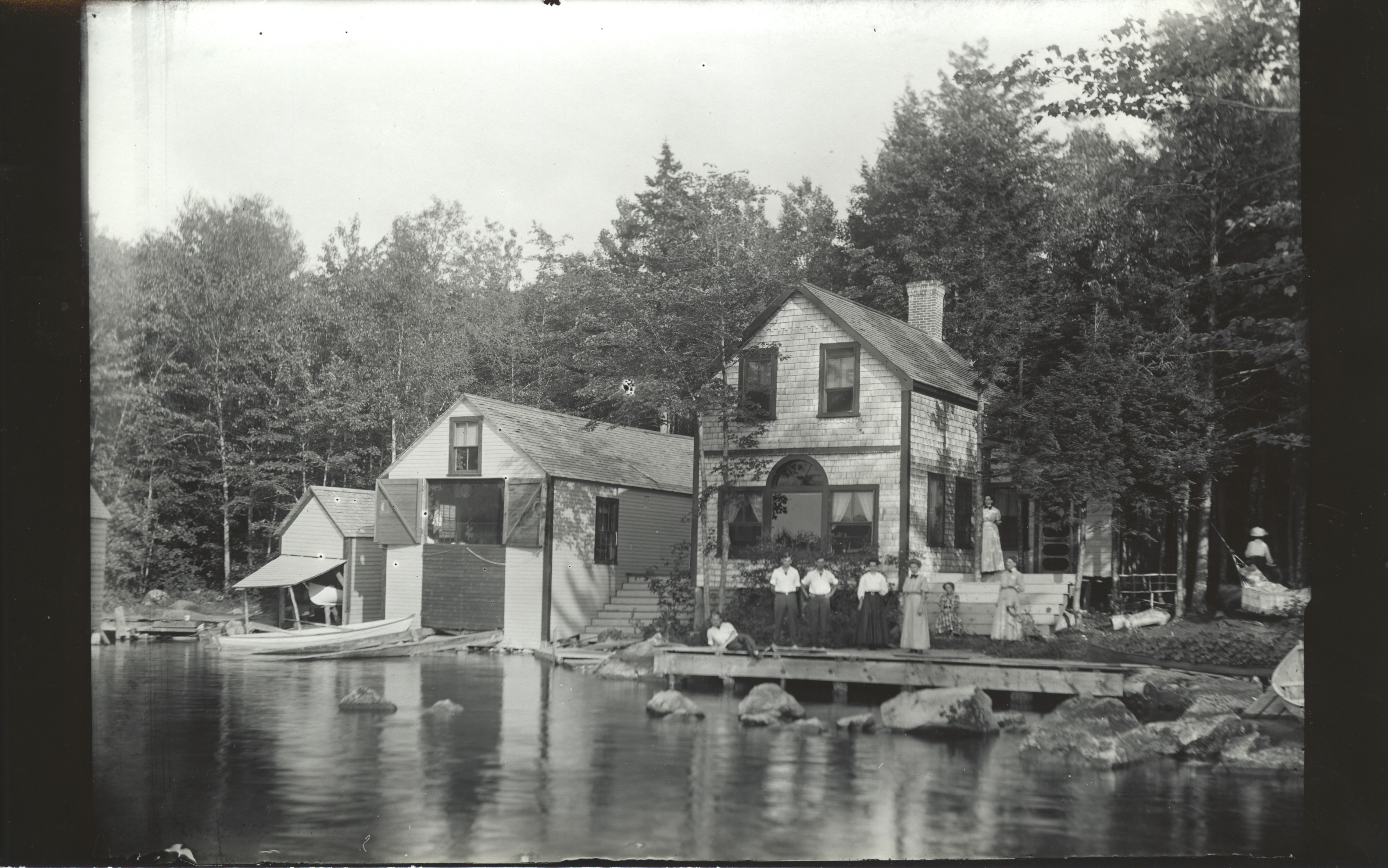 Cox Cottage, boathouse and outbuilding on Sewall Road, Aug. 1908.