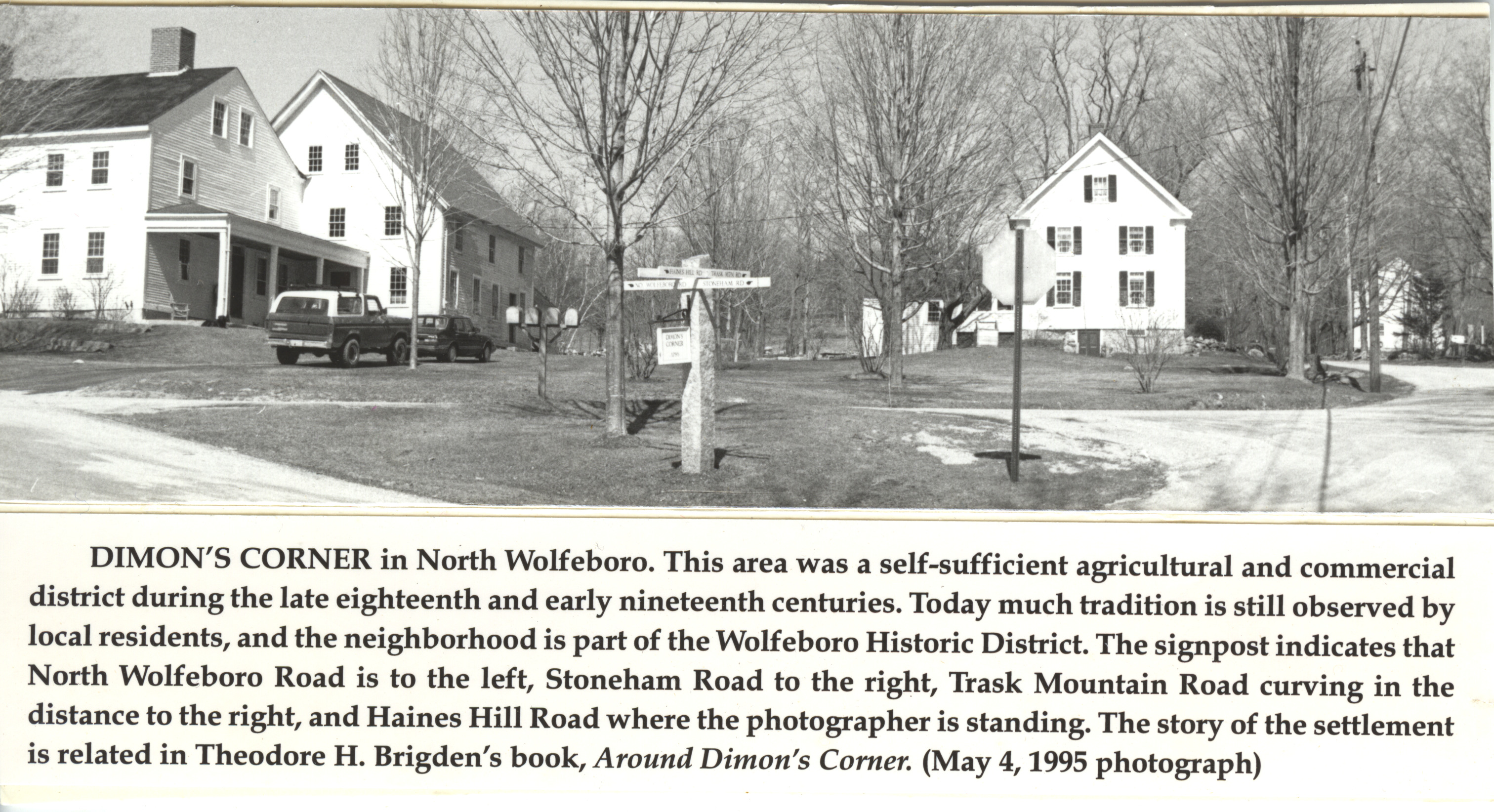 Dimon's Corner is reached via Rt. 28 and remains as a scenic area with a lot of history preserved. The Historic District noted in the caption no longer exists.