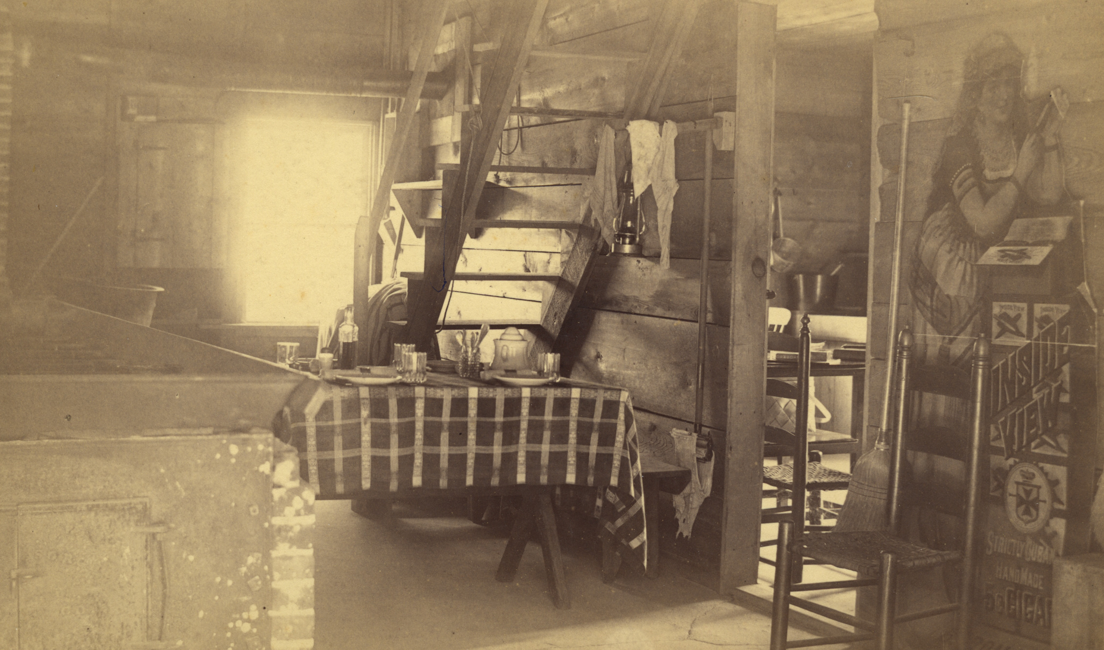 The Meader homestead on North Main St. near Forest Rd. was settlers farm No. 4. purchased by Ebenezer Meader about 1770. This photo inside their sap house is c. 1880. This is a tasting area, indicating they sold maple syrup directly from the farm, similar to many local producers today,