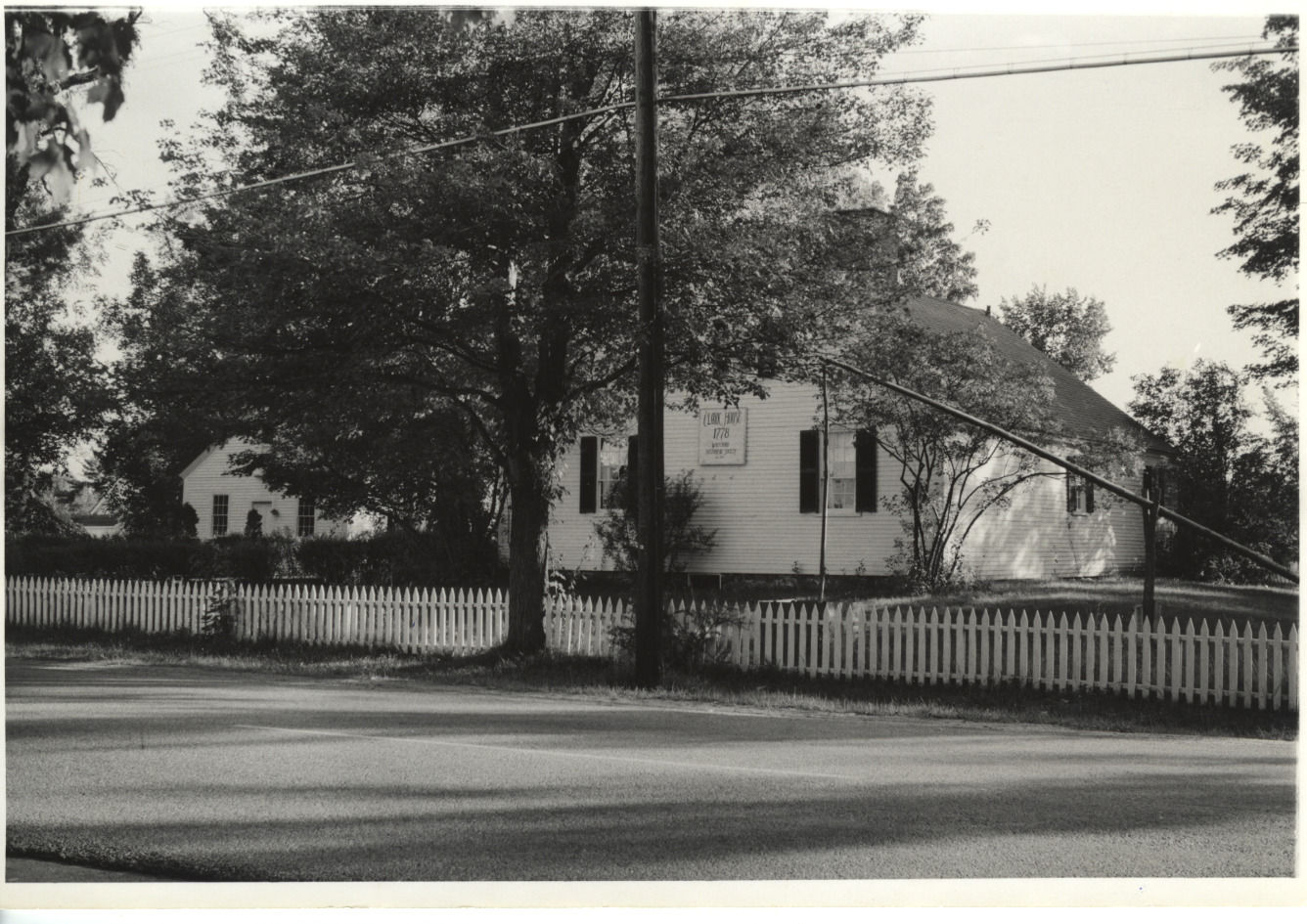 The Clark Museum Complex viewed from South Main Street, 1960. Pleasant Valley Schoolhouse, built c. 1805 is on the left. Clark House, built c. 1778, is on the right.