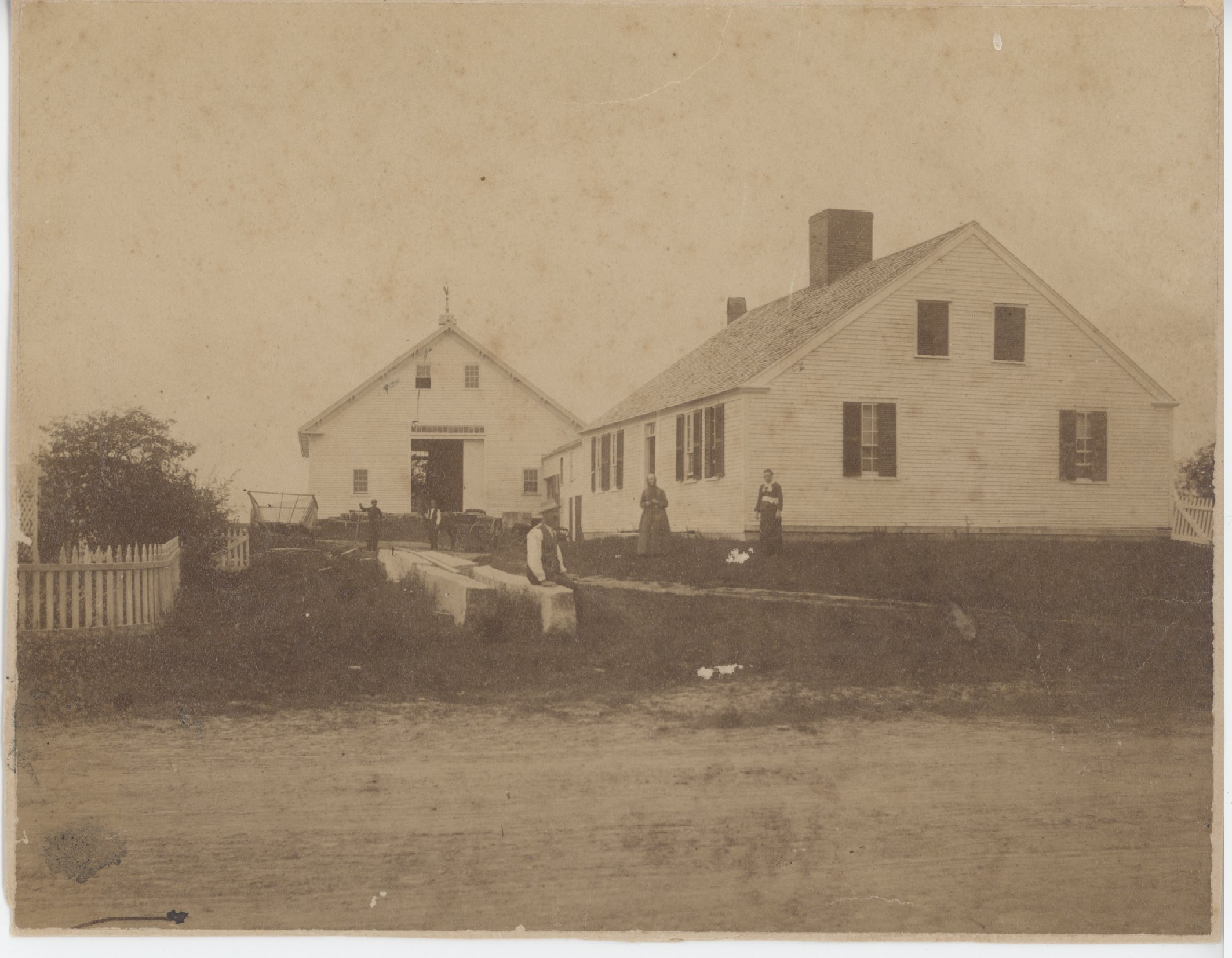 This is the only view of the Clark House with the original barn attached. Shortly after the house was donated to the Town of Wolfeboro in 1917, the barn was removed and relocated to Goodrich Road, where it was used as a sheet metal shop for many years. Finally, with rotted sills and in very poor condition, it was demolished in 2022. The small ell between the house and the barn was also removed shortly after 1917 and probably demolished.