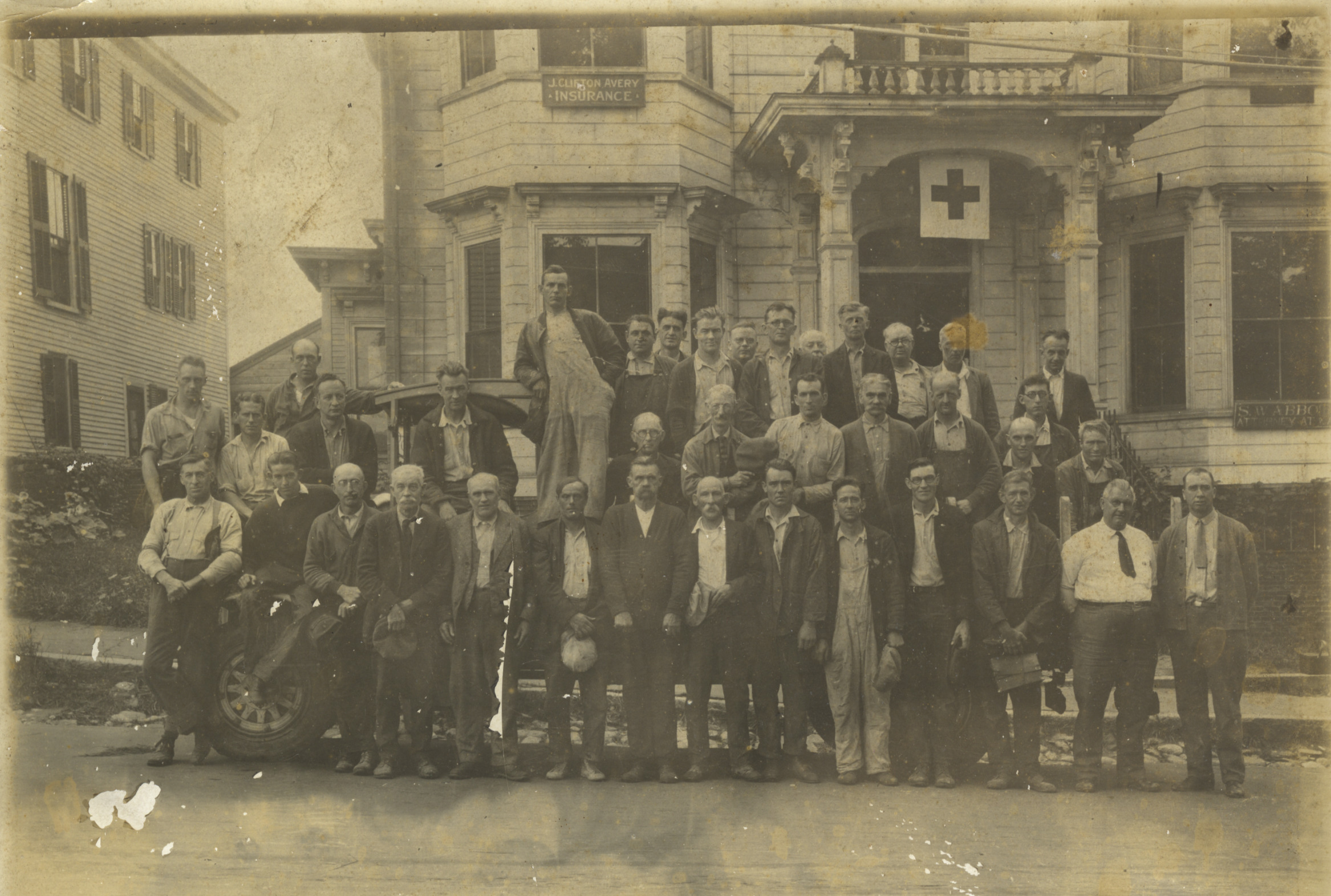 Red Cross personnel or possibly blood donors at the Durgin Building, c. 1916.