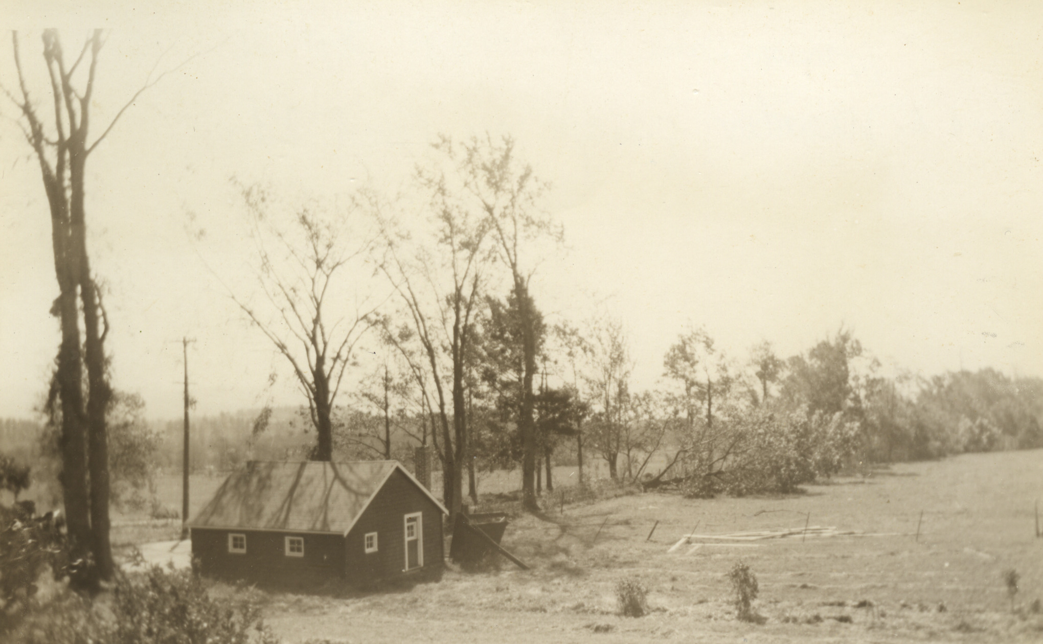 Sept. 21, 1938, hurricane. Tree damage around Fred E. Meader's garage on Forest Rd.
