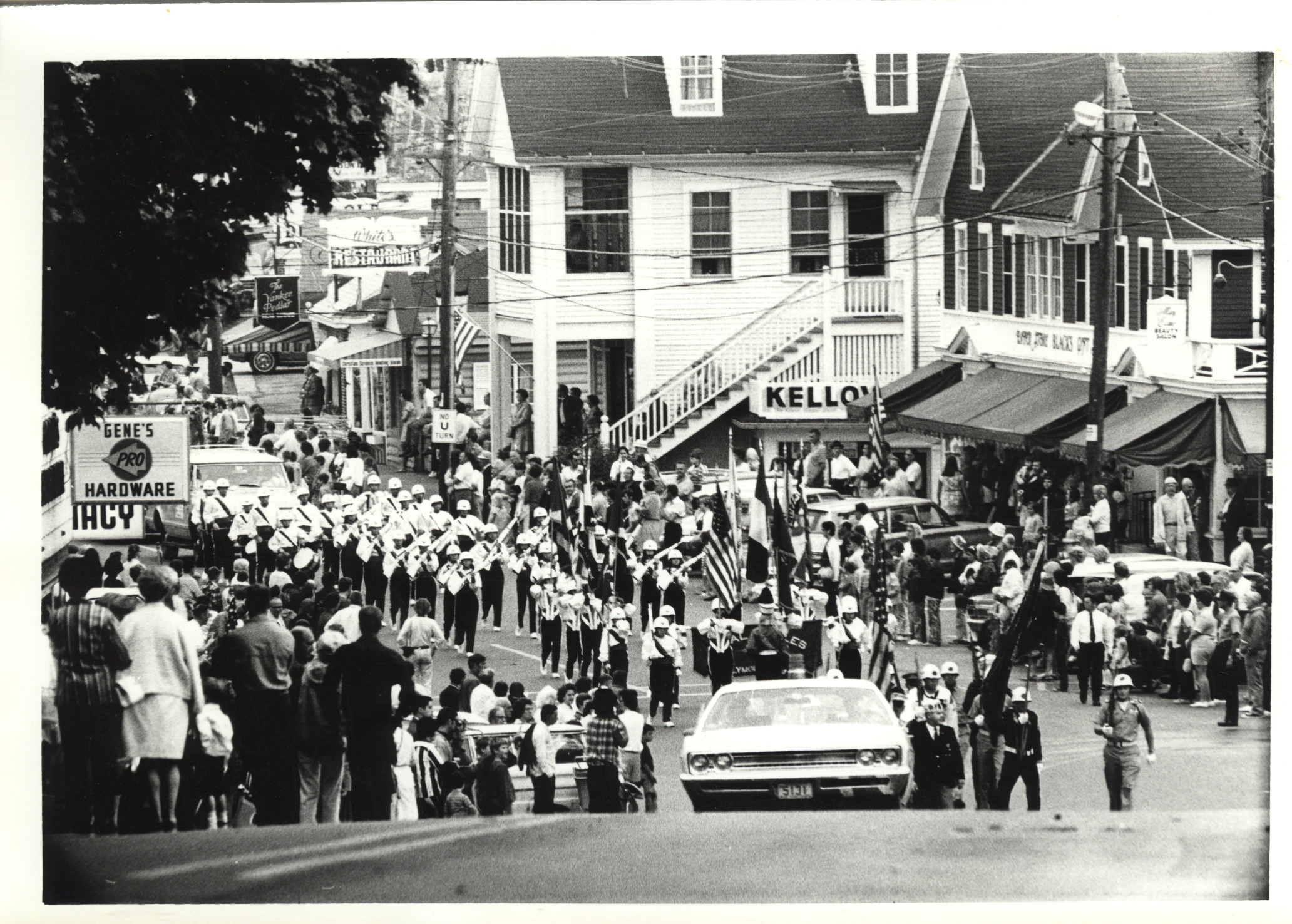 Fourth of July, c. 1980. Parade heading thru downtown, coming from North Main St.