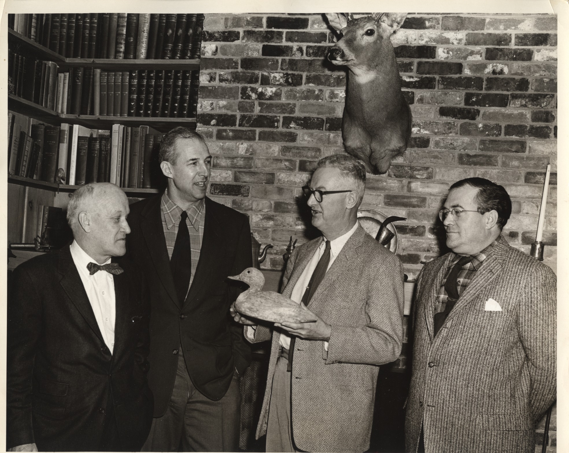 Ralph G. Carpenter, II holding duck decoy. Others unknown.