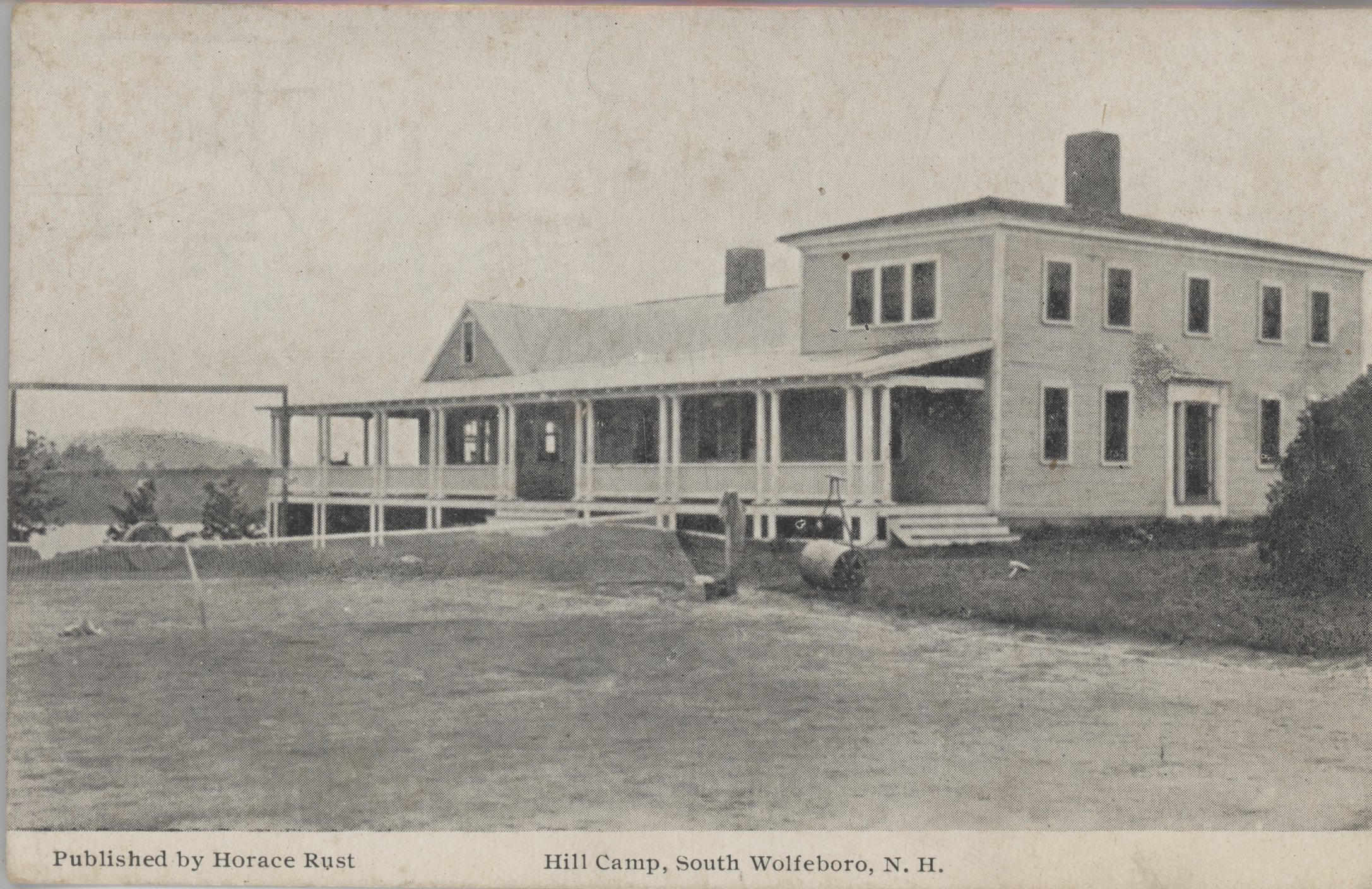 The Hill Camp, better known as Hill School Camp, was a tutorial summer camp for boys, 1910-1976, located on Rust Pond. Organized studies were included as well as outdoor activities. The camp then became the Wolfeboro Camp School and is still active today. The card is c. 1910's'