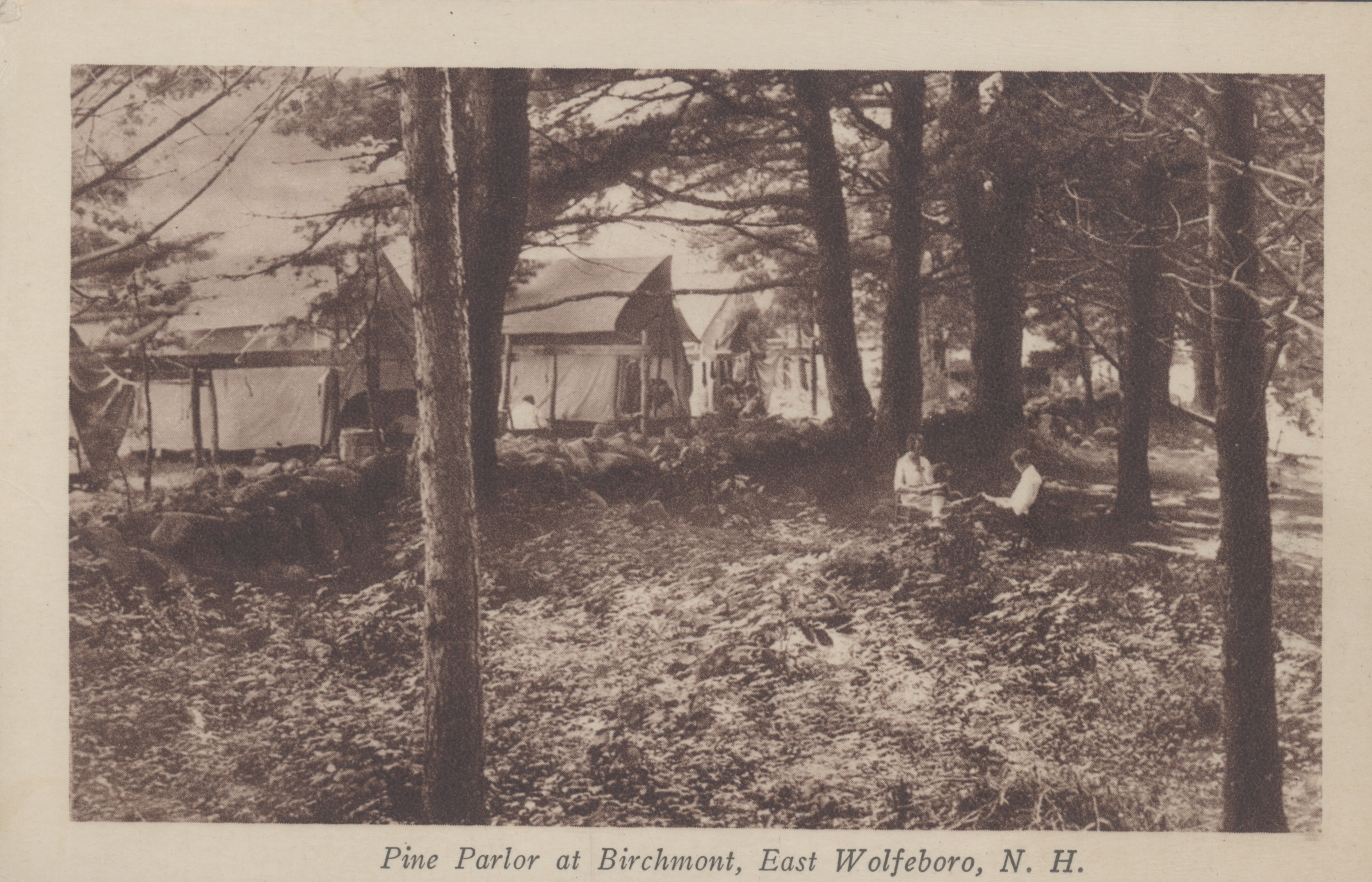 Birchmont Camp; tents among the pines.