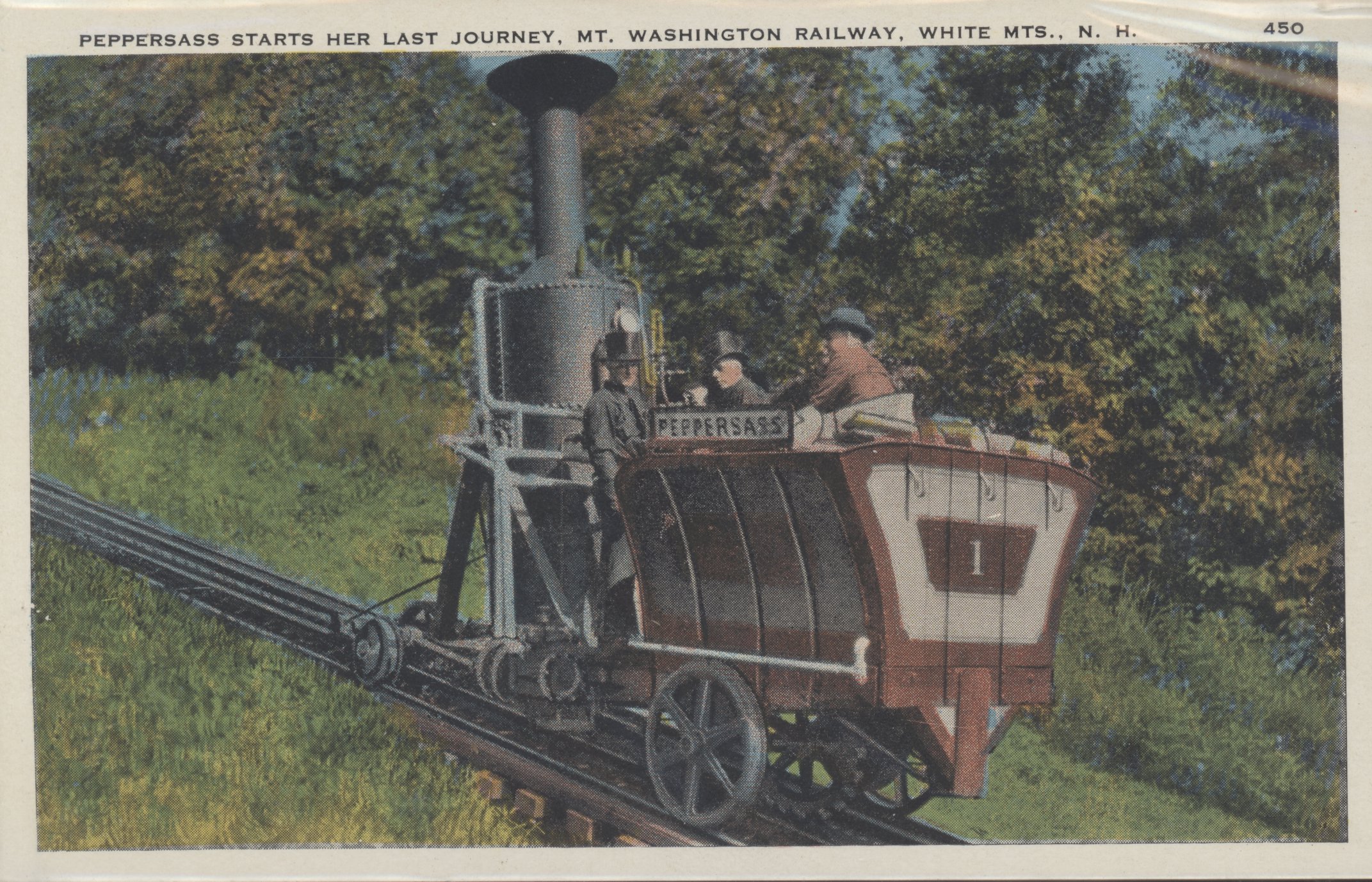 Old Peppersass was built in 1869 when the Cog Railway was developed and operated until 1929, as this postcard shows the last run.