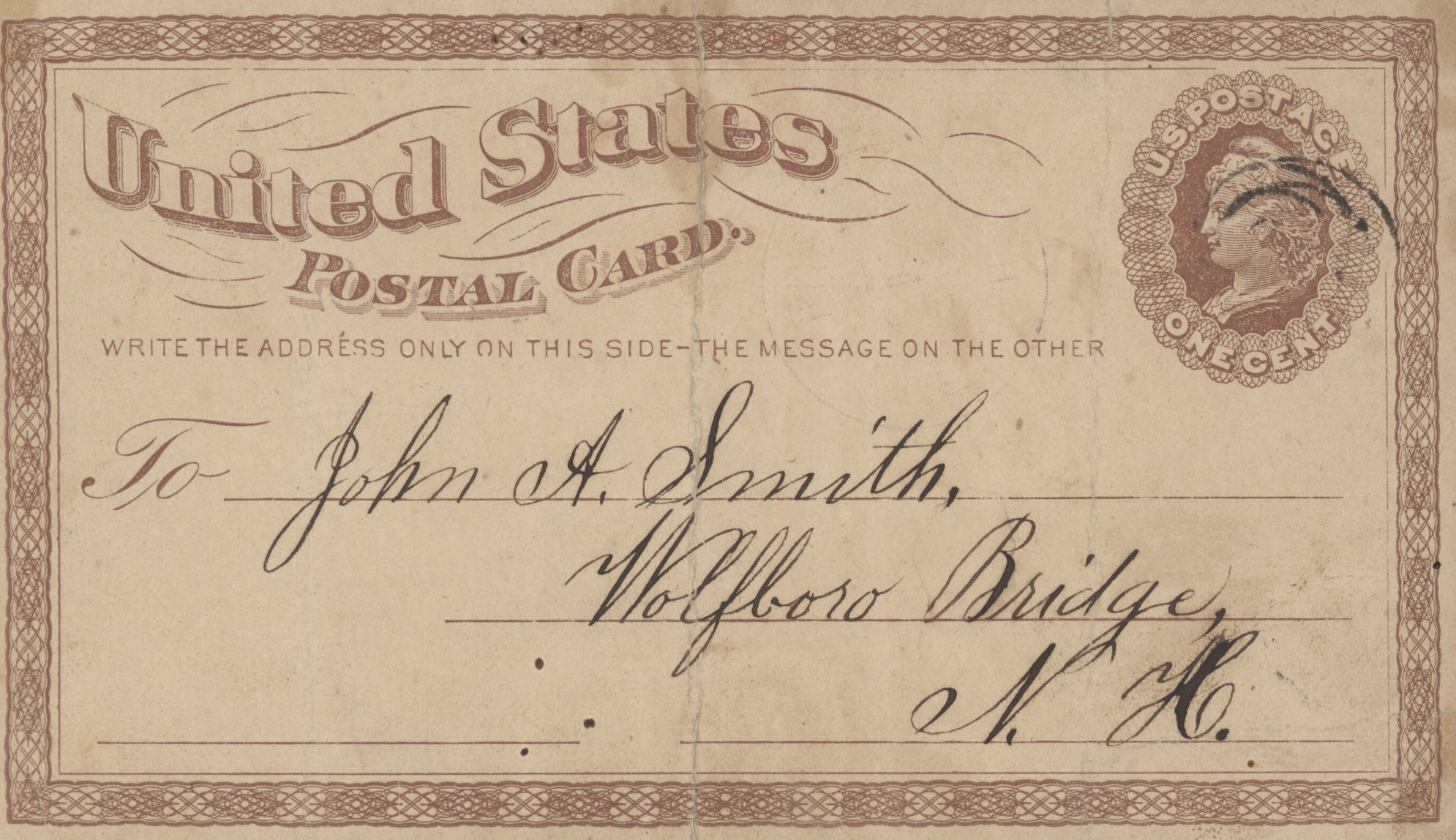 This Government issued Postal Card is dated 1875 and is the oldest in the WHS collection. It predates the time when privately issued postcards were permitted.