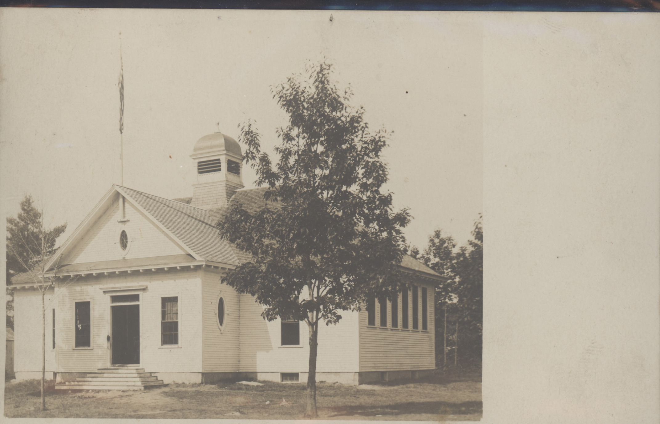 South Wolfeboro one-room Schoolhouse. Built about 1902-03, the building is now a Professional Building with medical offices. This card is shortly after the building was erected.
