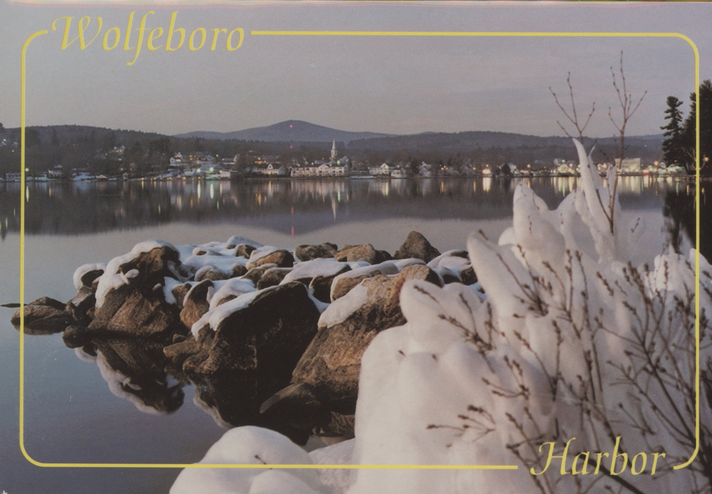 Wolfeboro Harbor, from Clark Point in winter. Modern card.