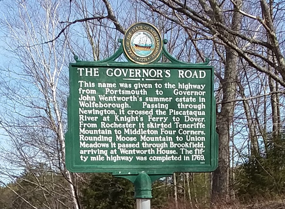 This State Marker is on Route 16 just south of the junction with Route 109 and marks the southern section of the Governor's Road from Portsmouth to Wolfeboro.